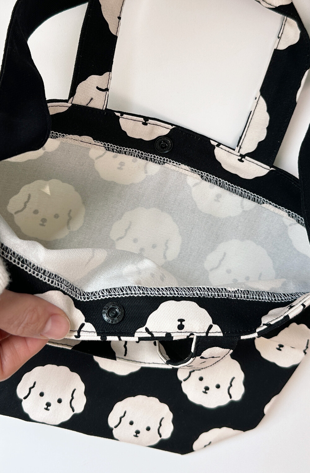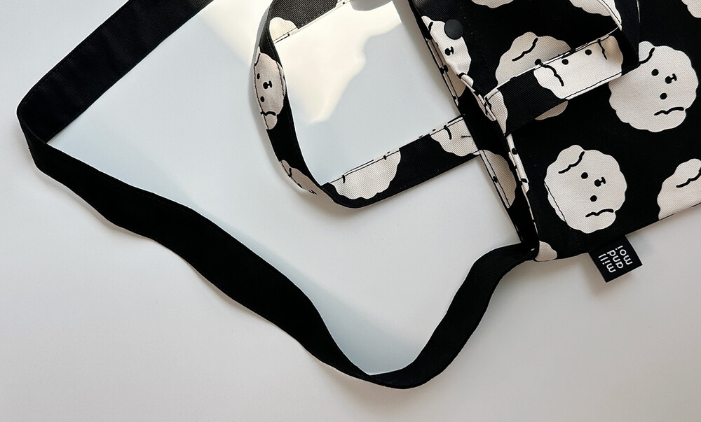 안감이 없으며, 밑면에 하드한 보강재가 들어있지 않은 일반 면 에코백 타입의 제품입니다.