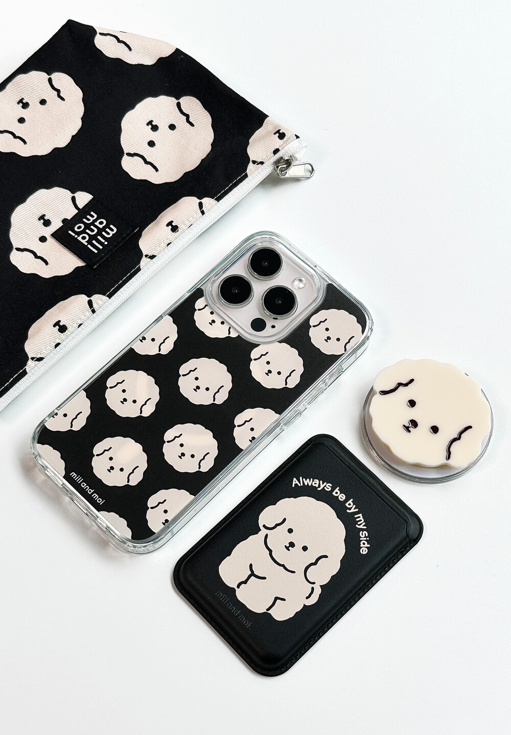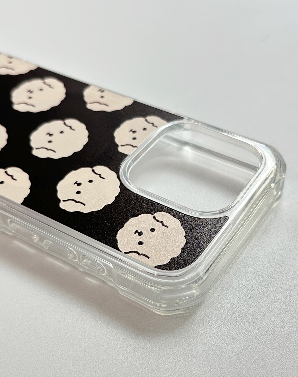전체 블랙 색상이 아닌, 투명 하드젤리 타입의 맥세이프 케이스 상판에 블랙바탕이 인쇄된 케이스입니다.