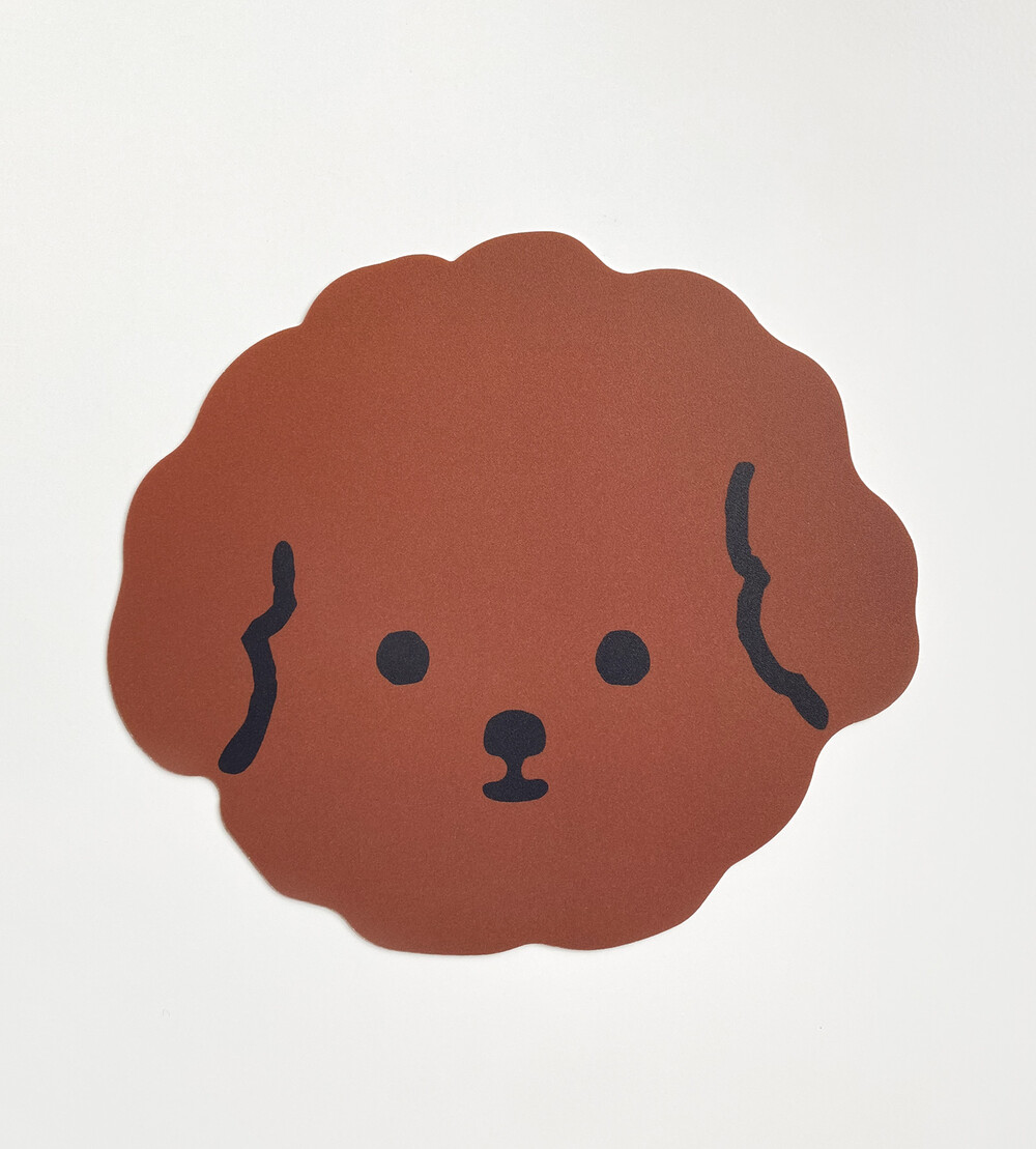 칙칙하지 않은 쨍한 브라운 색상에 귀여운 눈코입을 가진 푸들이 매력적인 제품이에요. 사각형이 아닌 얼굴 모양대로 컷팅되어 있어 더욱 귀엽답니다.