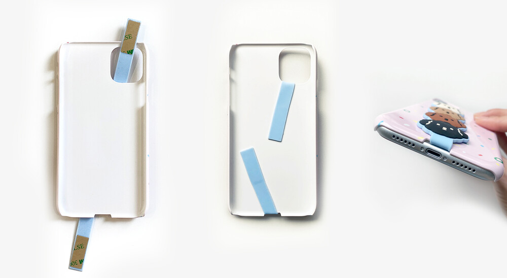 2. 양면테이프 종이를 제거 후 케이스 내부에 부착하여 줍니다.