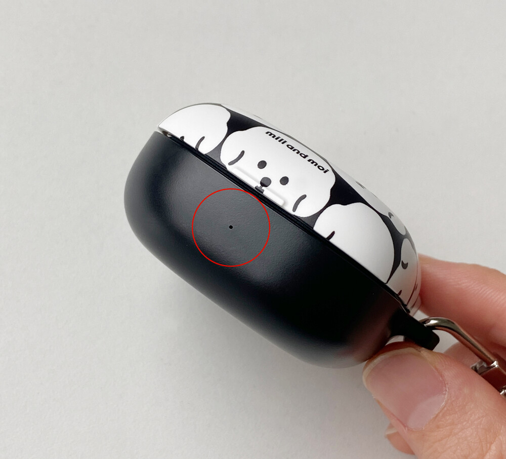 - 빼낼때에는 뚜껑을 연채로 오른쪽 키링고리부분을 한쪽 엄지손가락으로 누르면서 버즈본체의 왼쪽 모서리를 밀어내듯 꾸욱 눌러주세요.