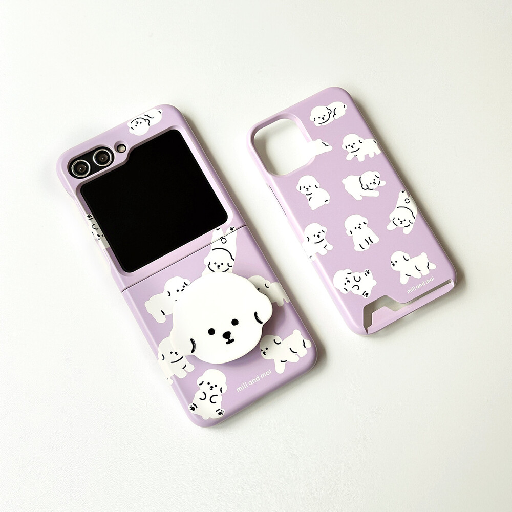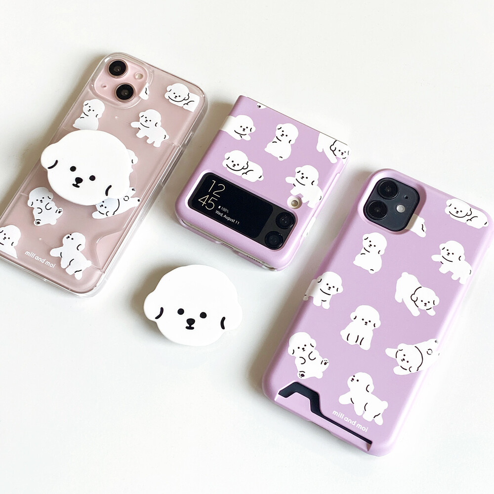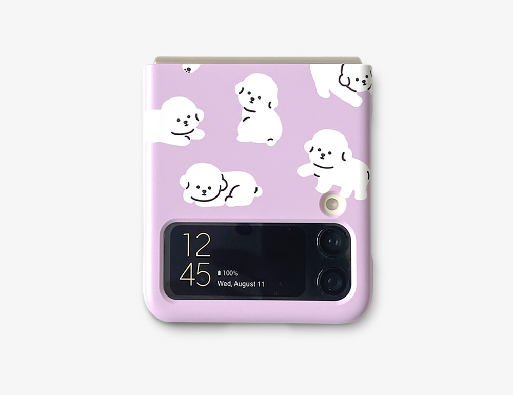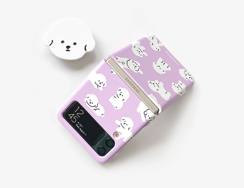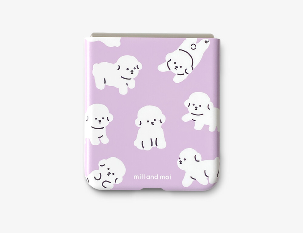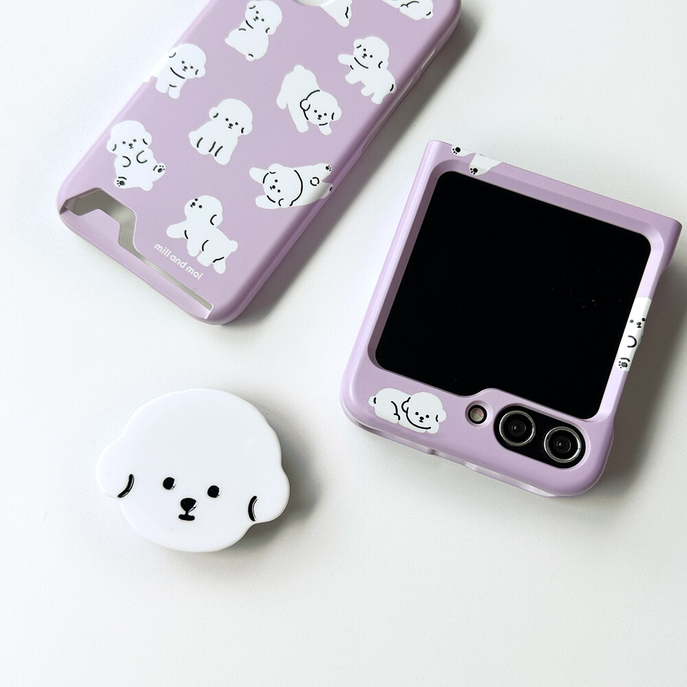 화사한 연보라색 바탕위 와글와글 프린트된 하얀 보숑이 캐릭터가 사랑스러운 제품입니다.