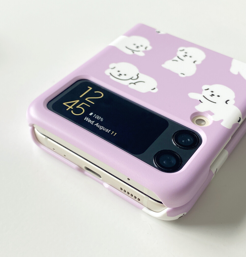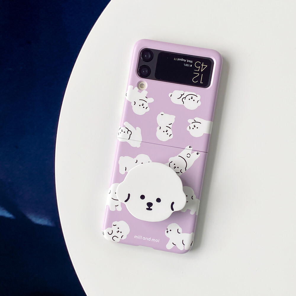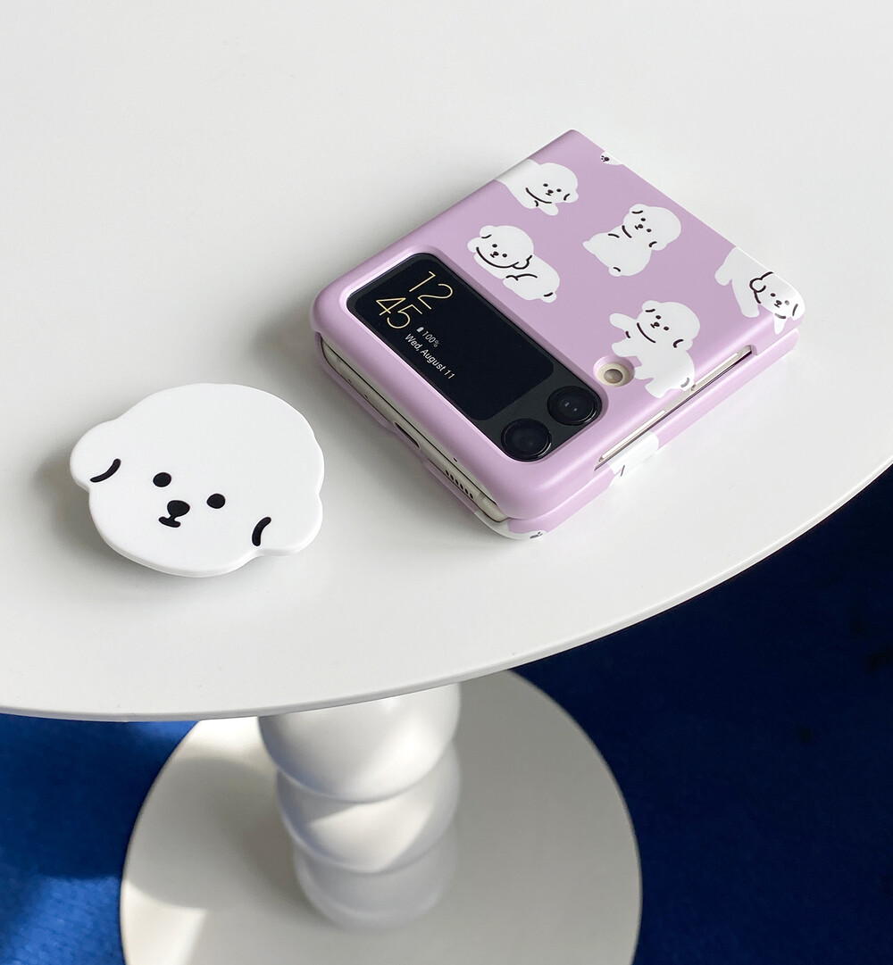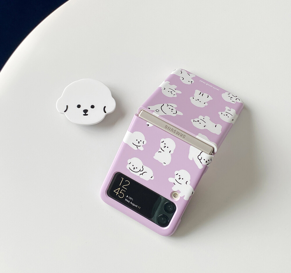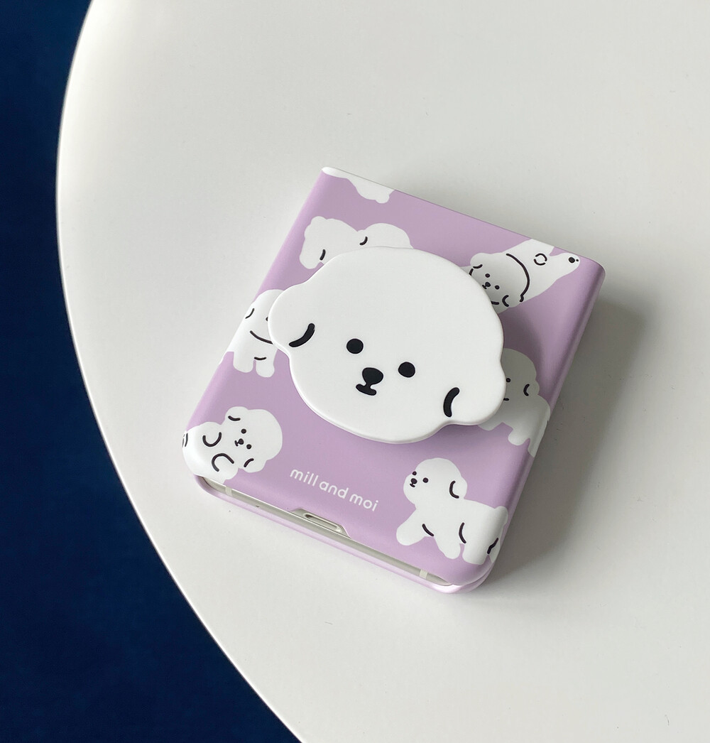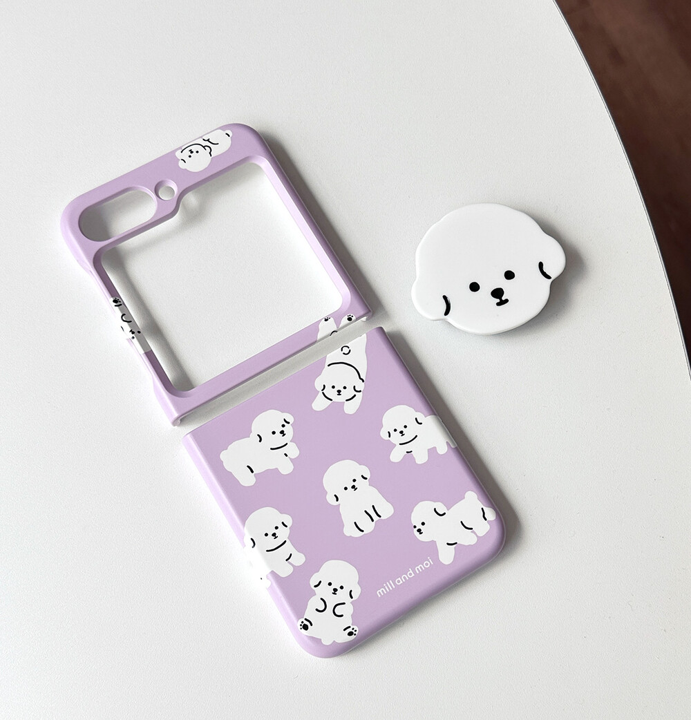 화사한 연보라색 바탕위 와글와글 프린트된 하얀 보숑이 캐릭터가 사랑스러운 제품입니다.