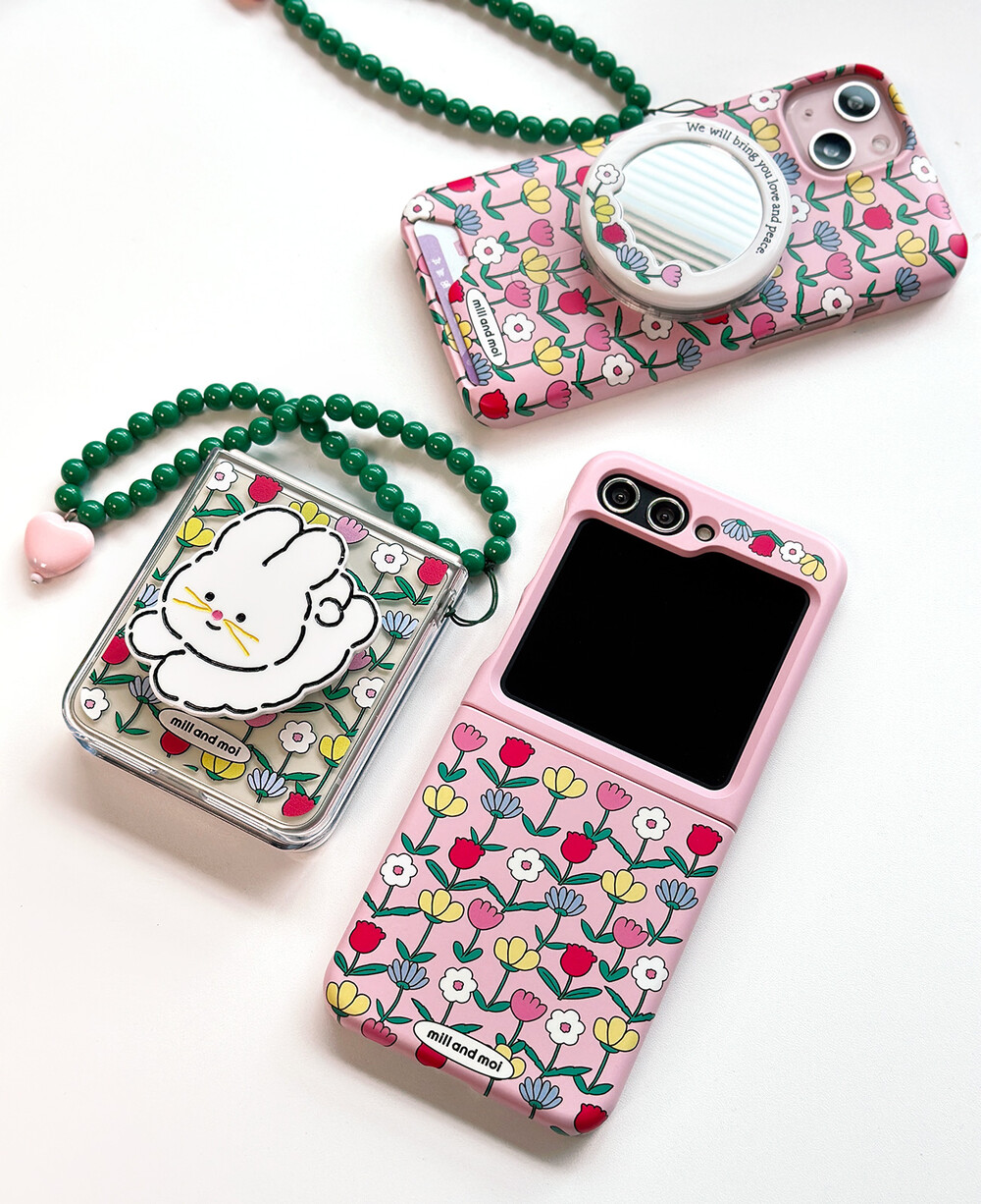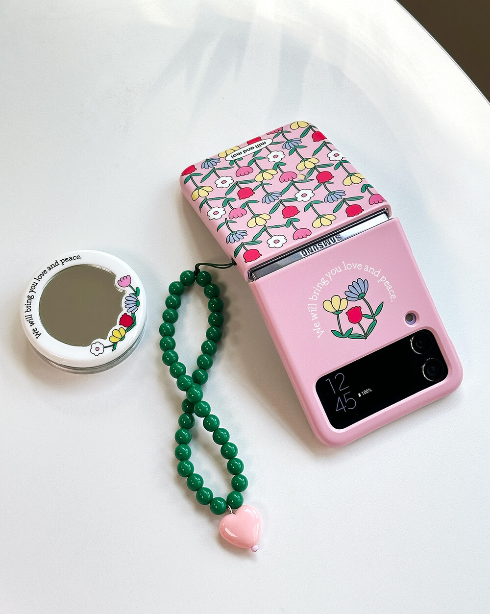 모든 Z플립 케이스에는 측면에 키링을 걸 수 있는 구멍이 있습니다. (일반 금속 고리형 키링 사용 불가, 얇은 줄 형태만 착용 가능)