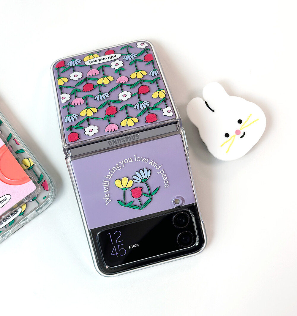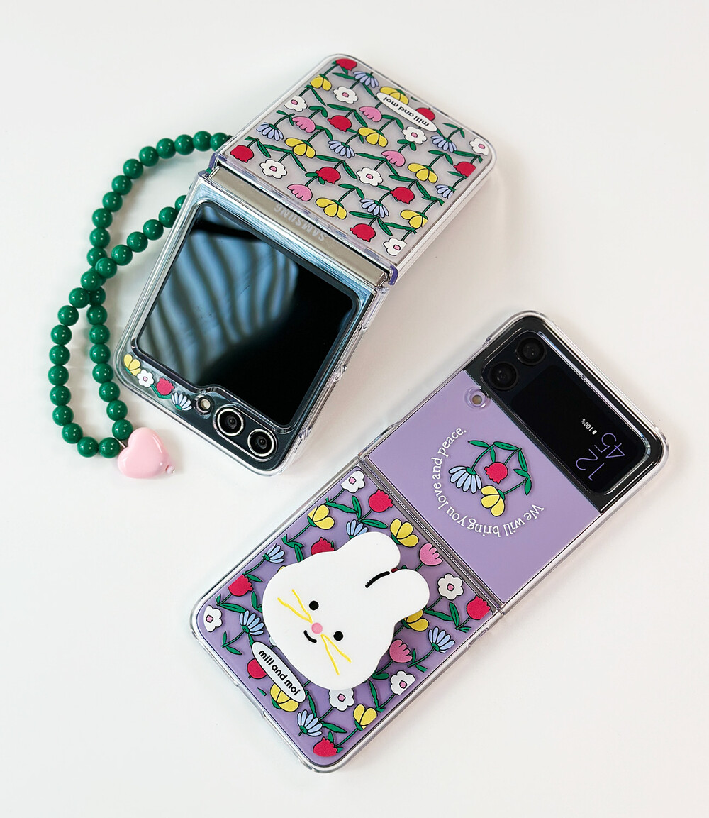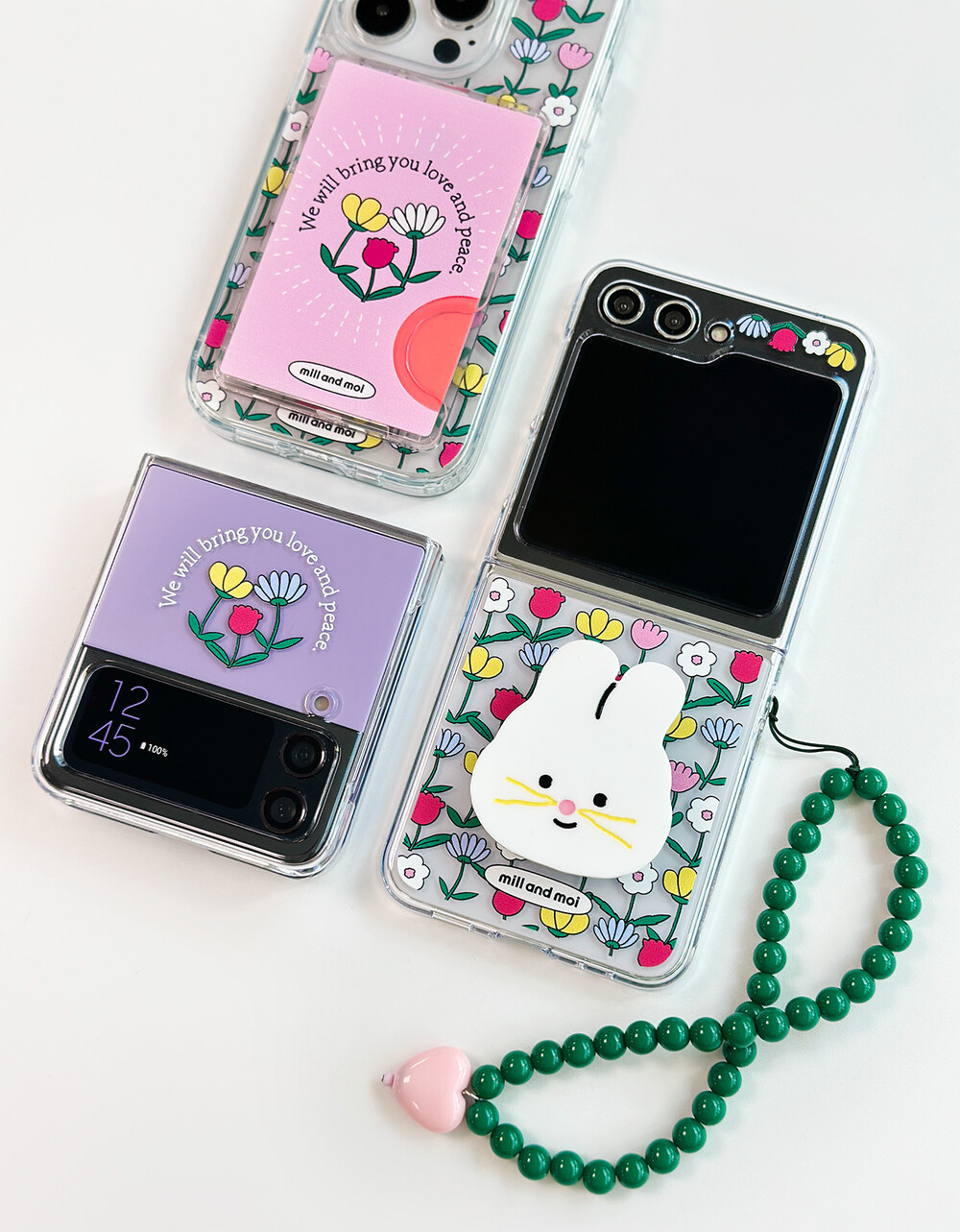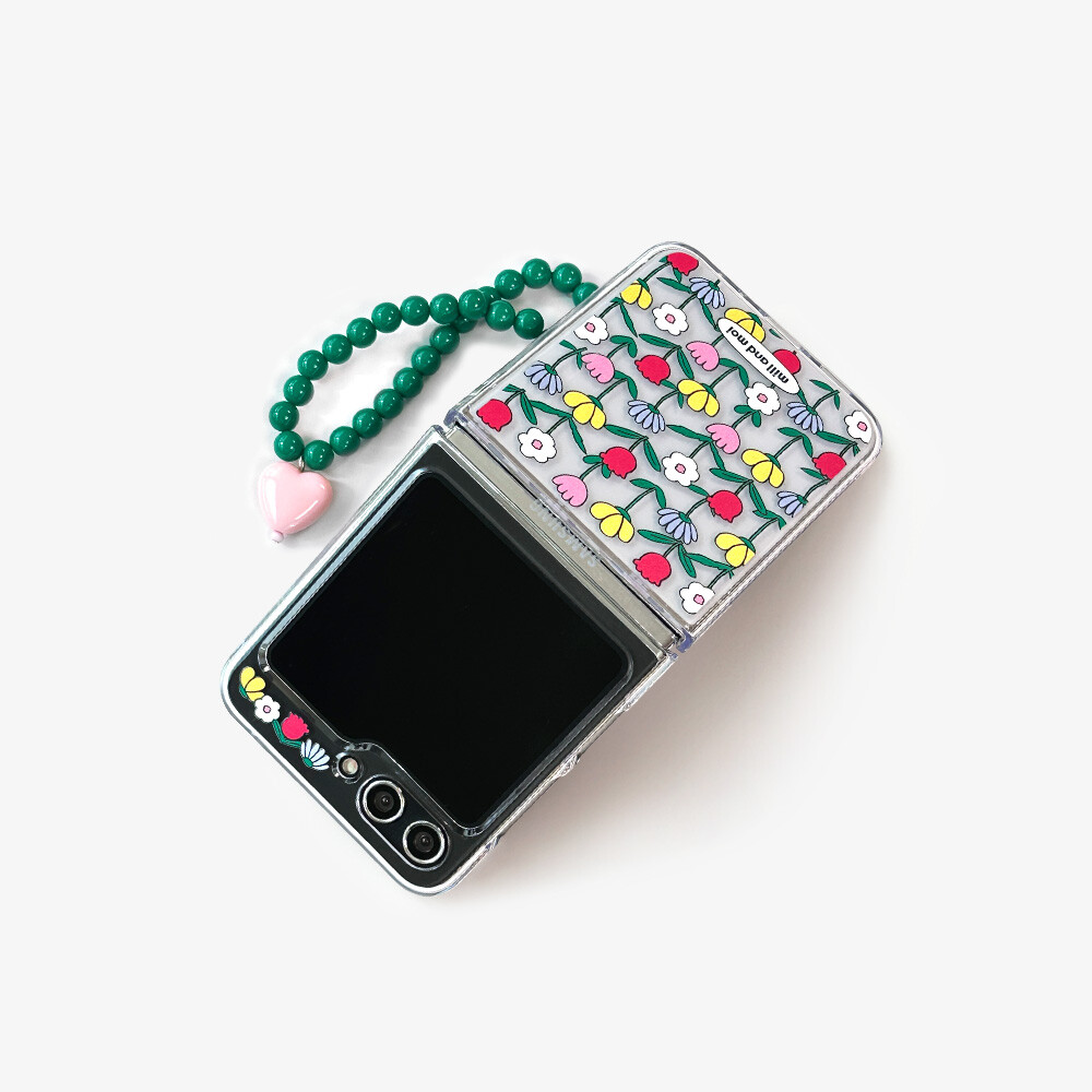 알록달록한 꽃무늬 패턴이 가득한 상큼한 케이스입니다. 밀앤모이의 비즈스트랩, 바니핑톡과 조합하여 사용해보세요!