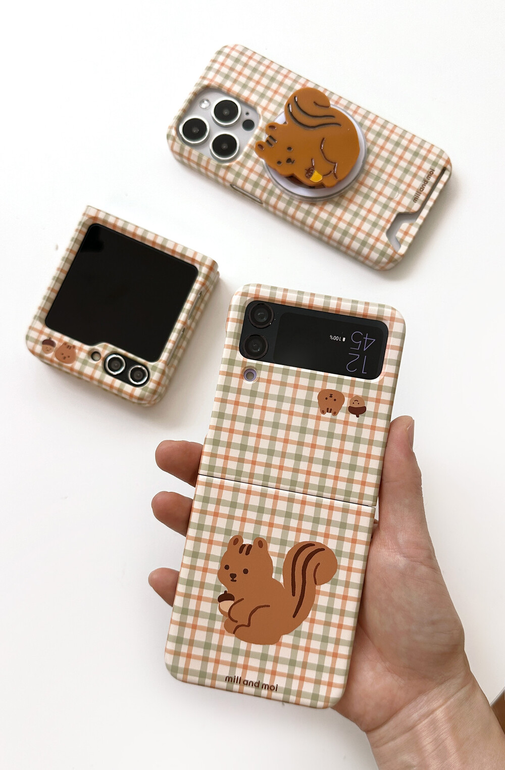 모든 Z플립 케이스에는 측면에 키링을 걸 수 있는 구멍이 있습니다. (일반 금속 고리형 키링 사용 불가, 얇은 줄 형태만 착용 가능)