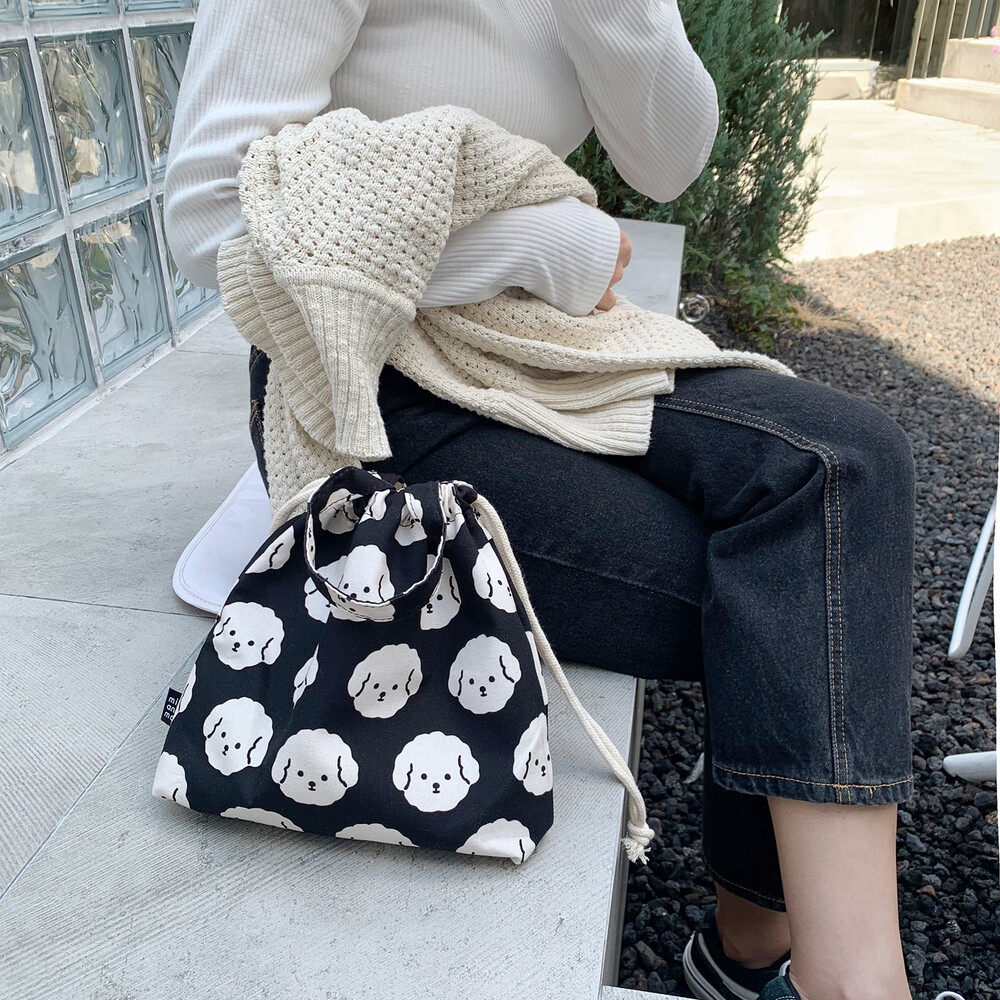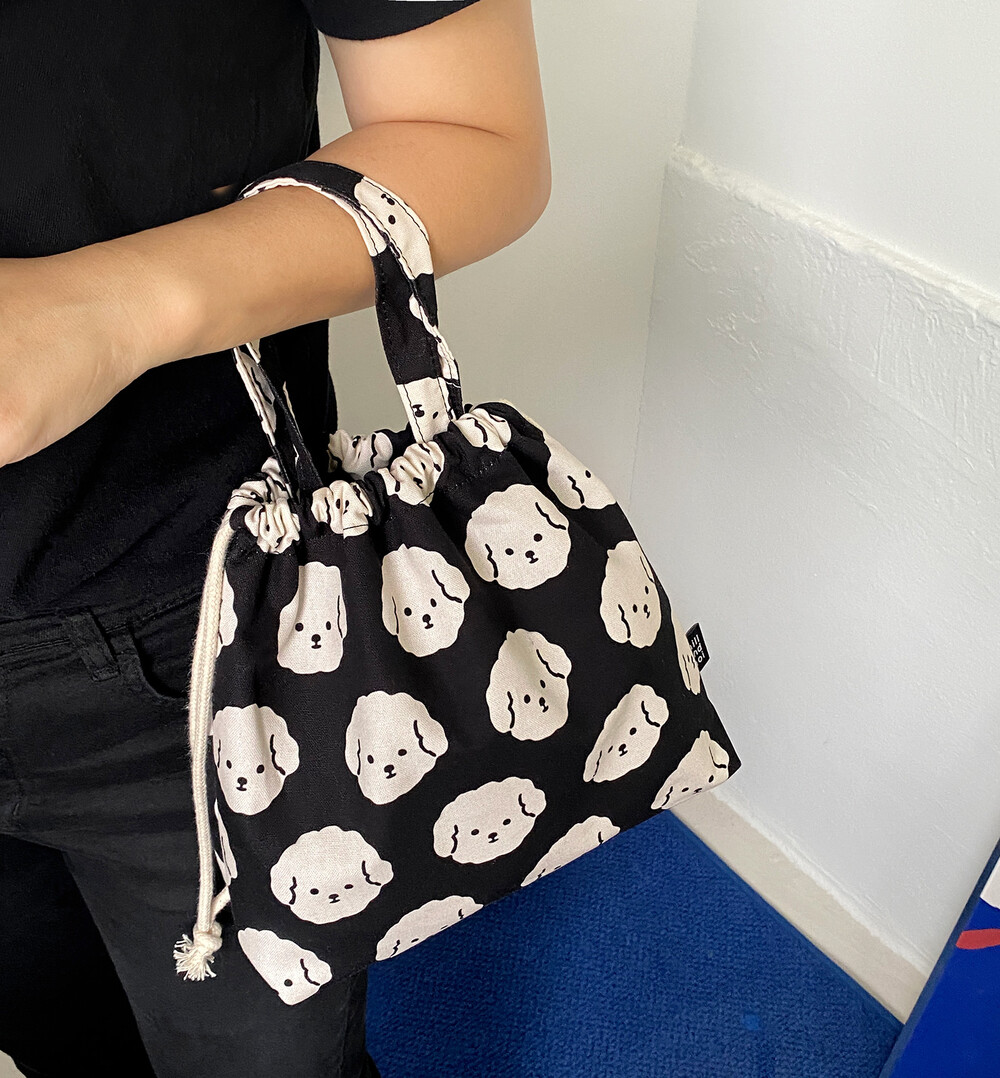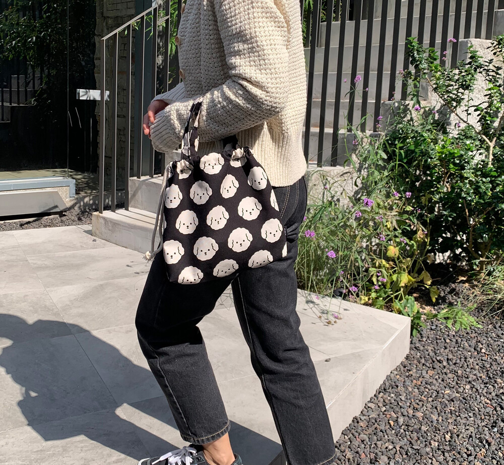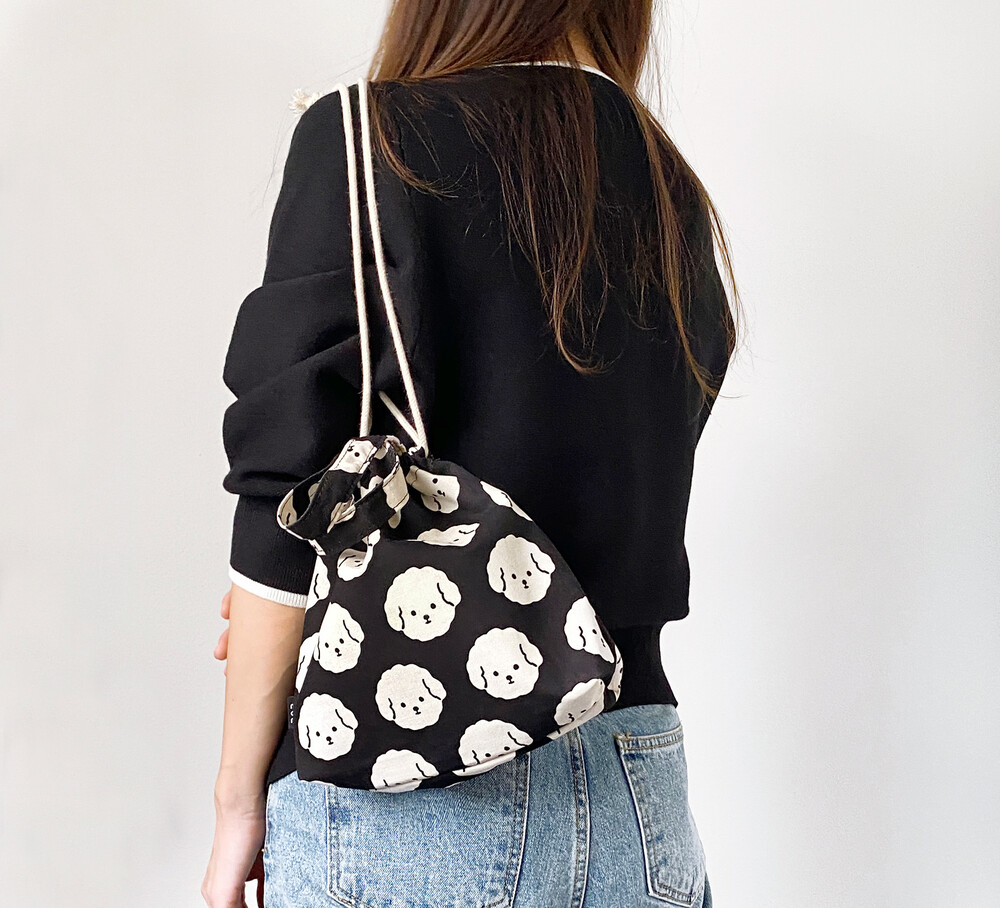 그리고 또 하나 큰 장점! 숄더백으로도 가능하다는 점이에요. 두 손이 자유로워야할땐 스트링으로 가방을 조인 후 어깨에 걸어주세요.