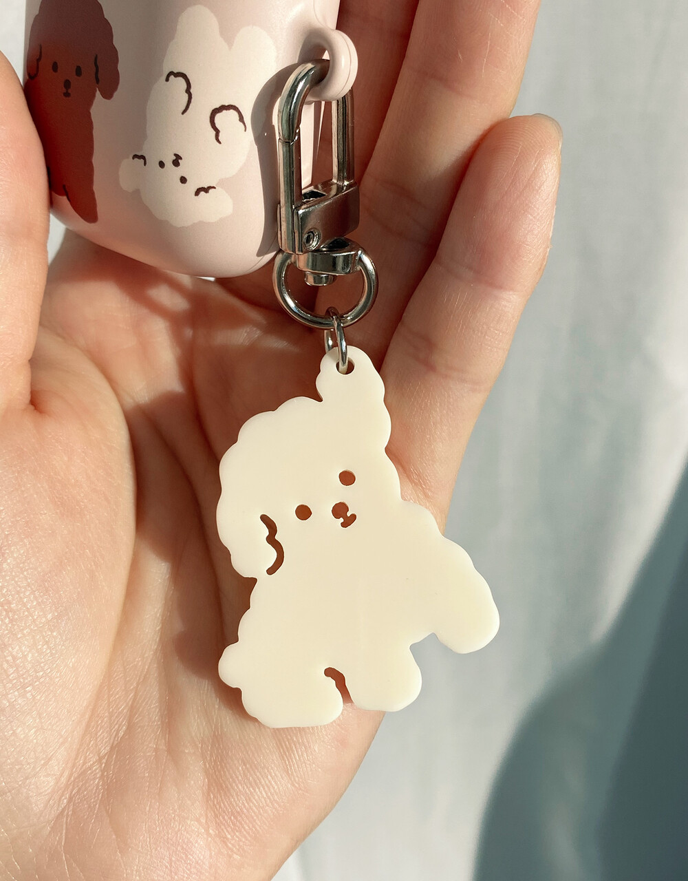 마치 한쪽 귀로 키링에 메달려 있는 듯한 귀여운 포즈의 크림푸드리 키링입니다.