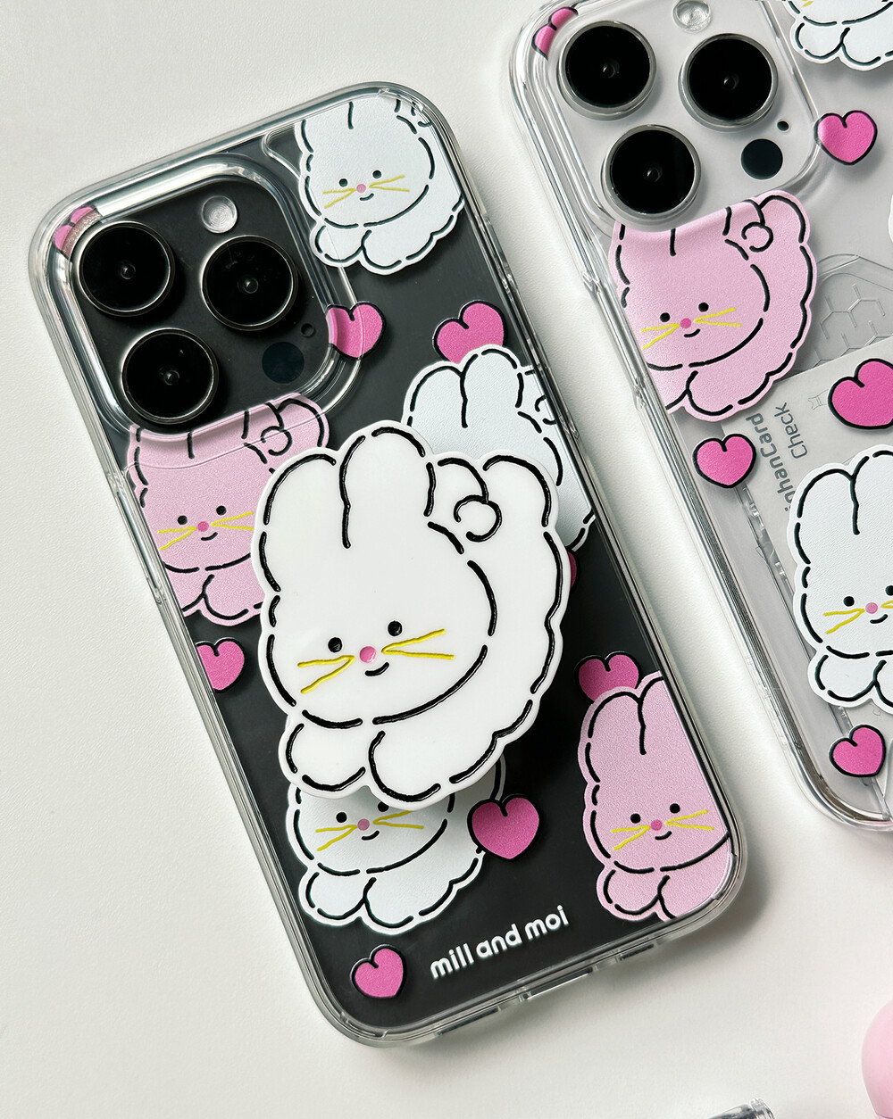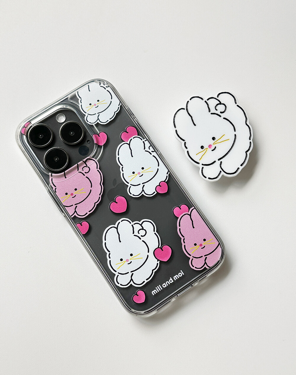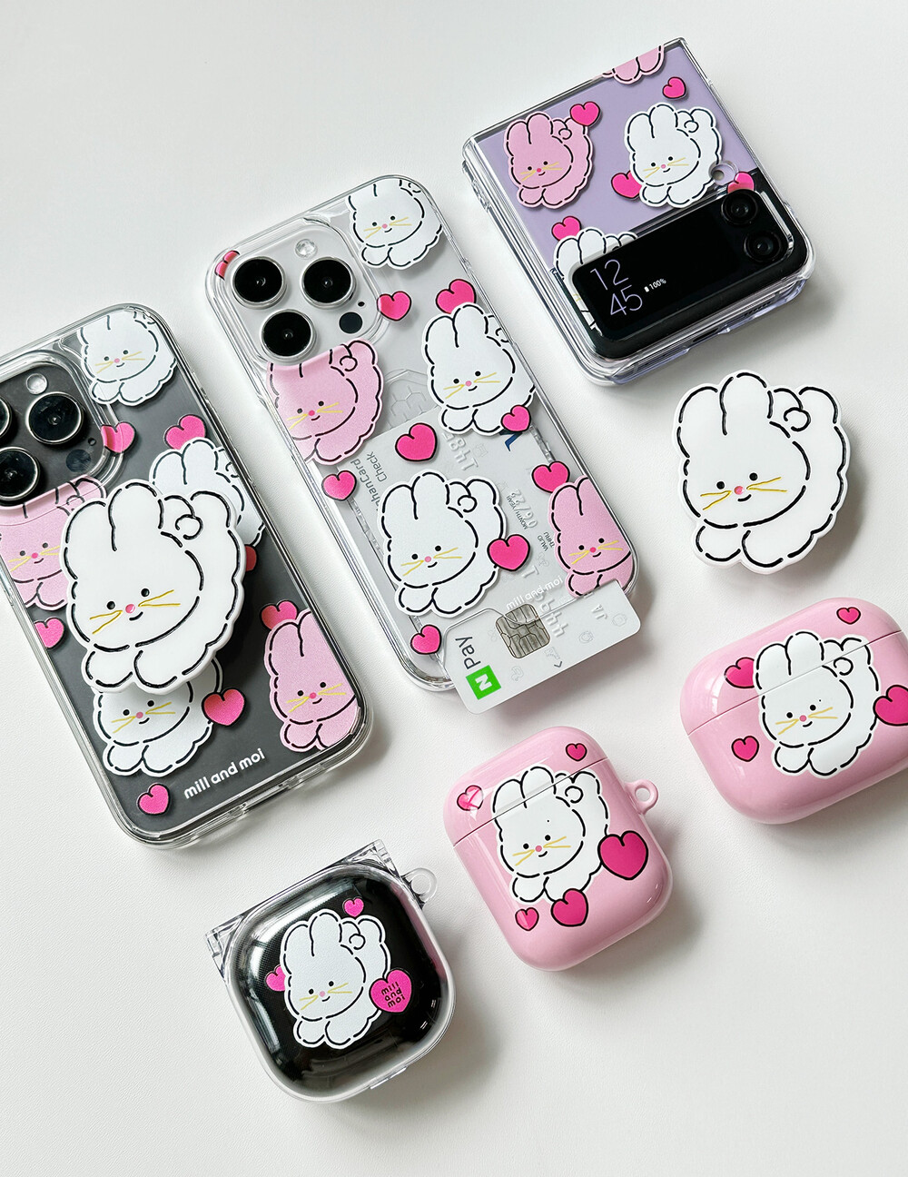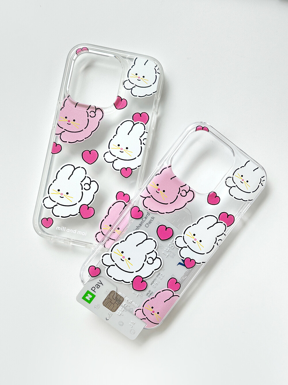 폴짝! 폴짝! 어딘가를 향해 점프하는 귀여운 점핑 바니핑과 하트패턴이 어우러져 사랑스러움이 가득한 케이스입니다.