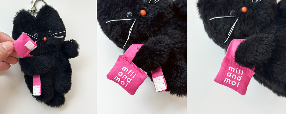 뒷면의 벨크로 떼어 인형 팔에 끼운 후 다시 부착하여주세요.