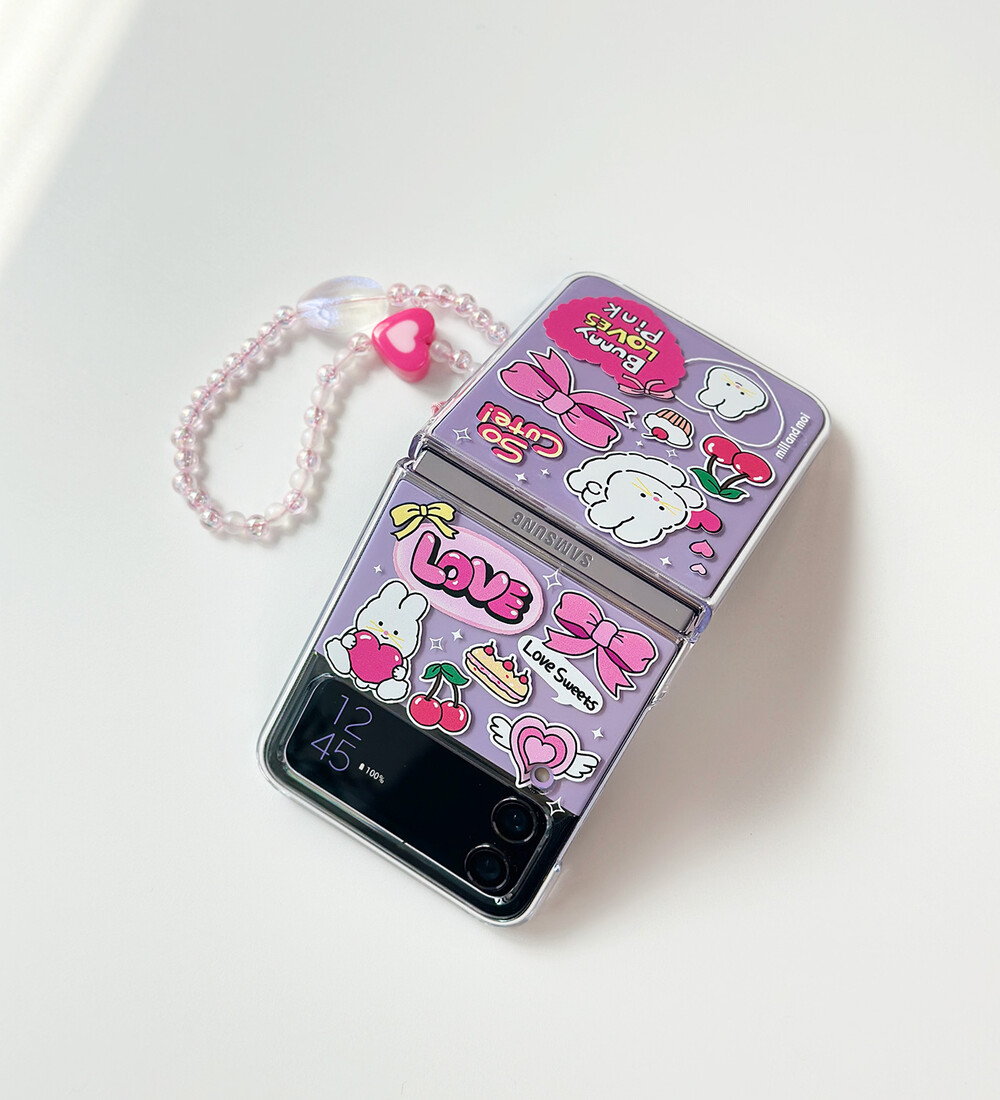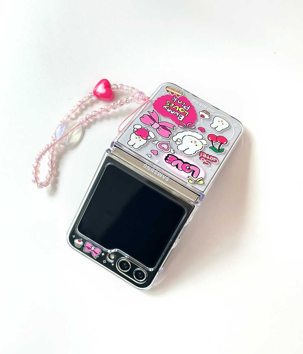 러브스위트 바니핑 Z플립 투명하드 케이스