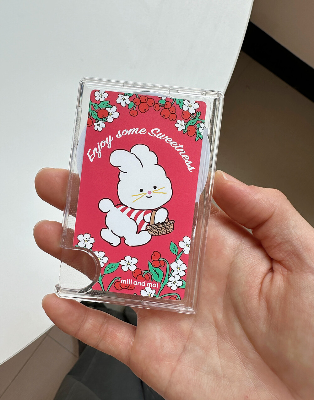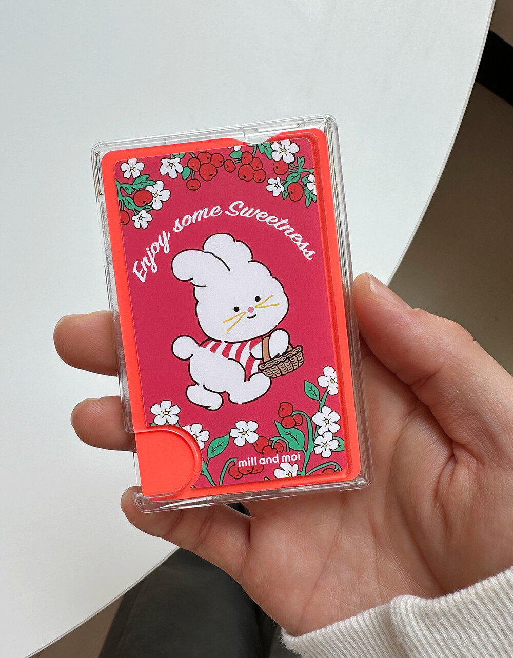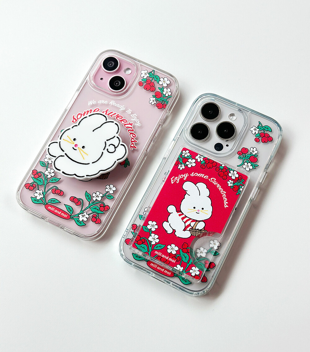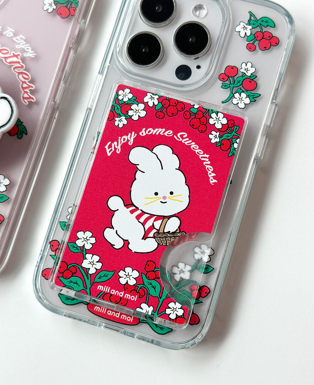 피크닉 바구니를 들고 있는 토끼 캐릭터까지 더해져 화사함+귀여움 가득한 케이스에요.