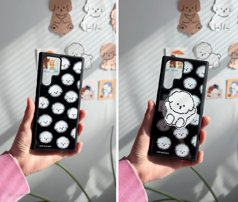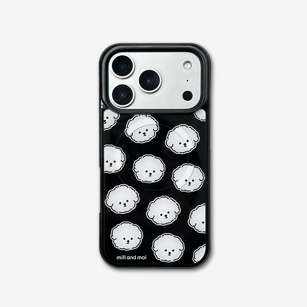 맥세이프 글로시] 뽀글 보숑 얼굴패턴 블랙 케이스