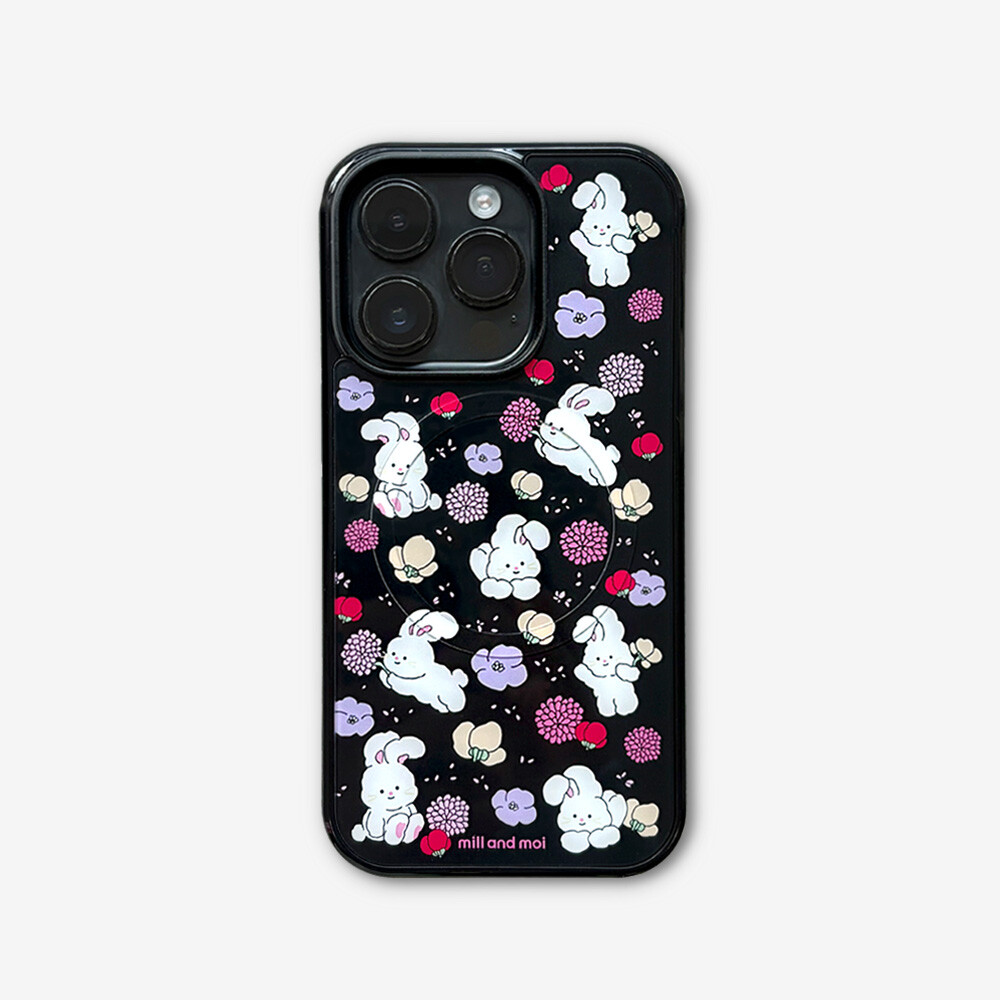 맥세이프 글로시] 플로랄 바니핑 블랙 케이스
