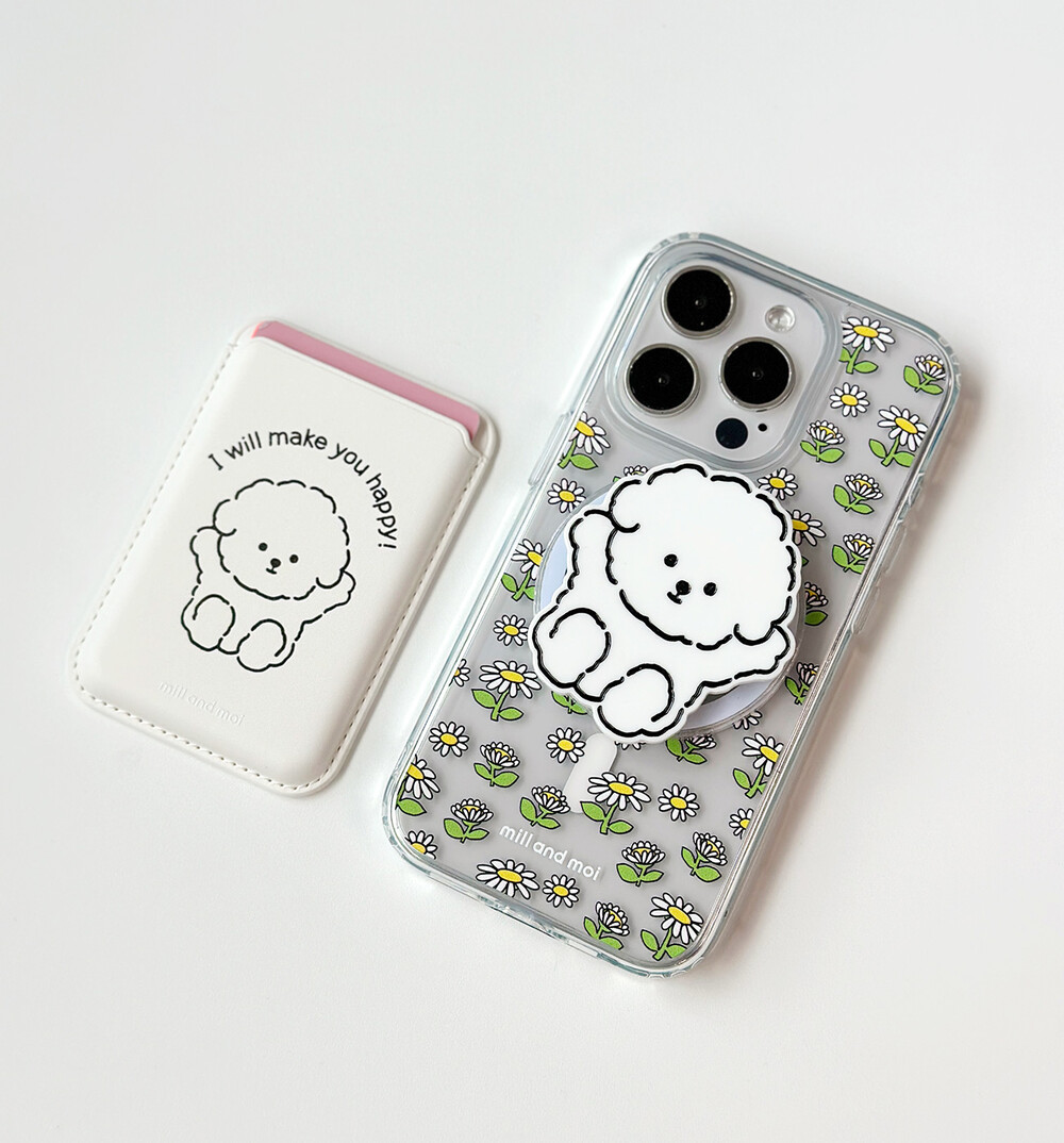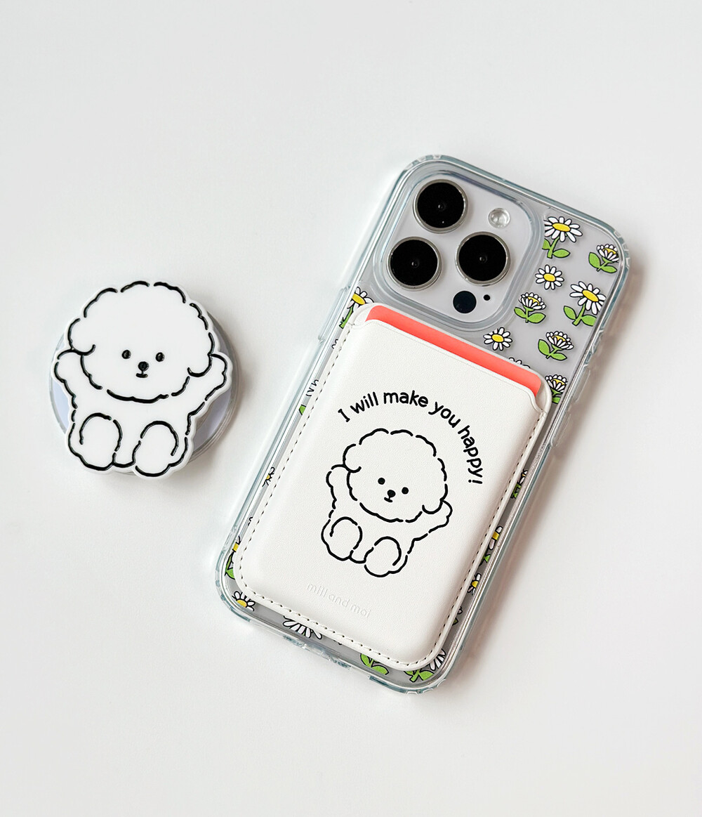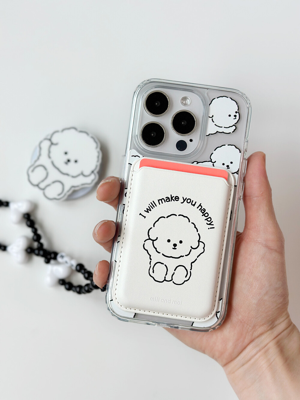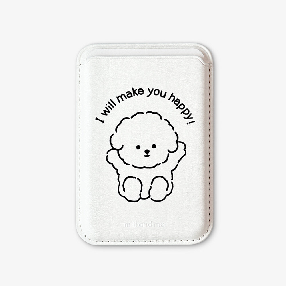맥세이프] 해피 뽀글보숑이 화이트 카드지갑