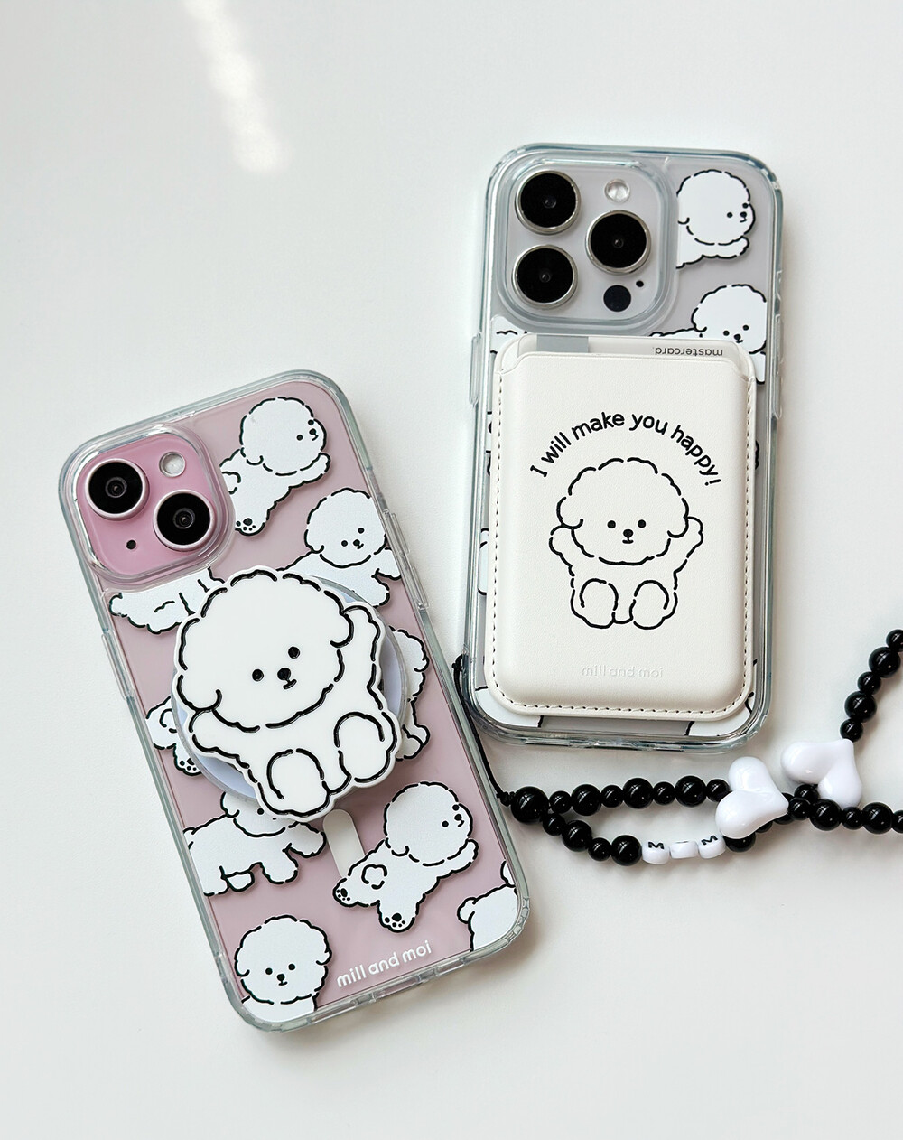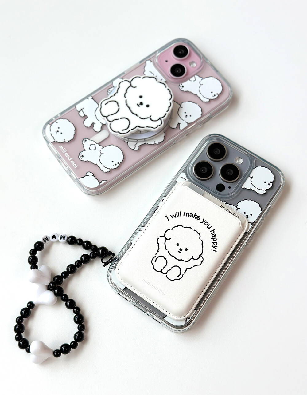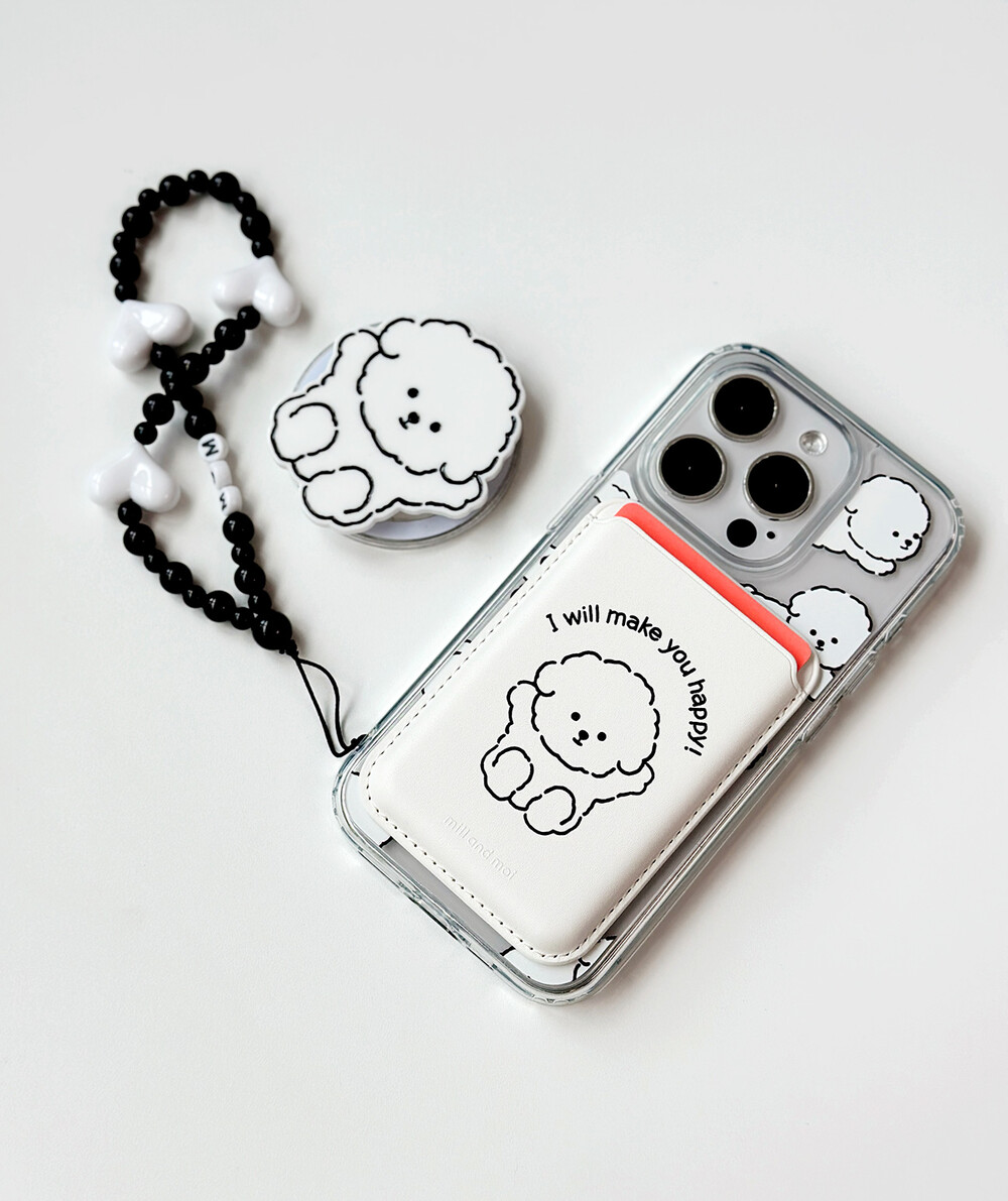 맥세이프] 해피 뽀글보숑이 화이트 카드지갑