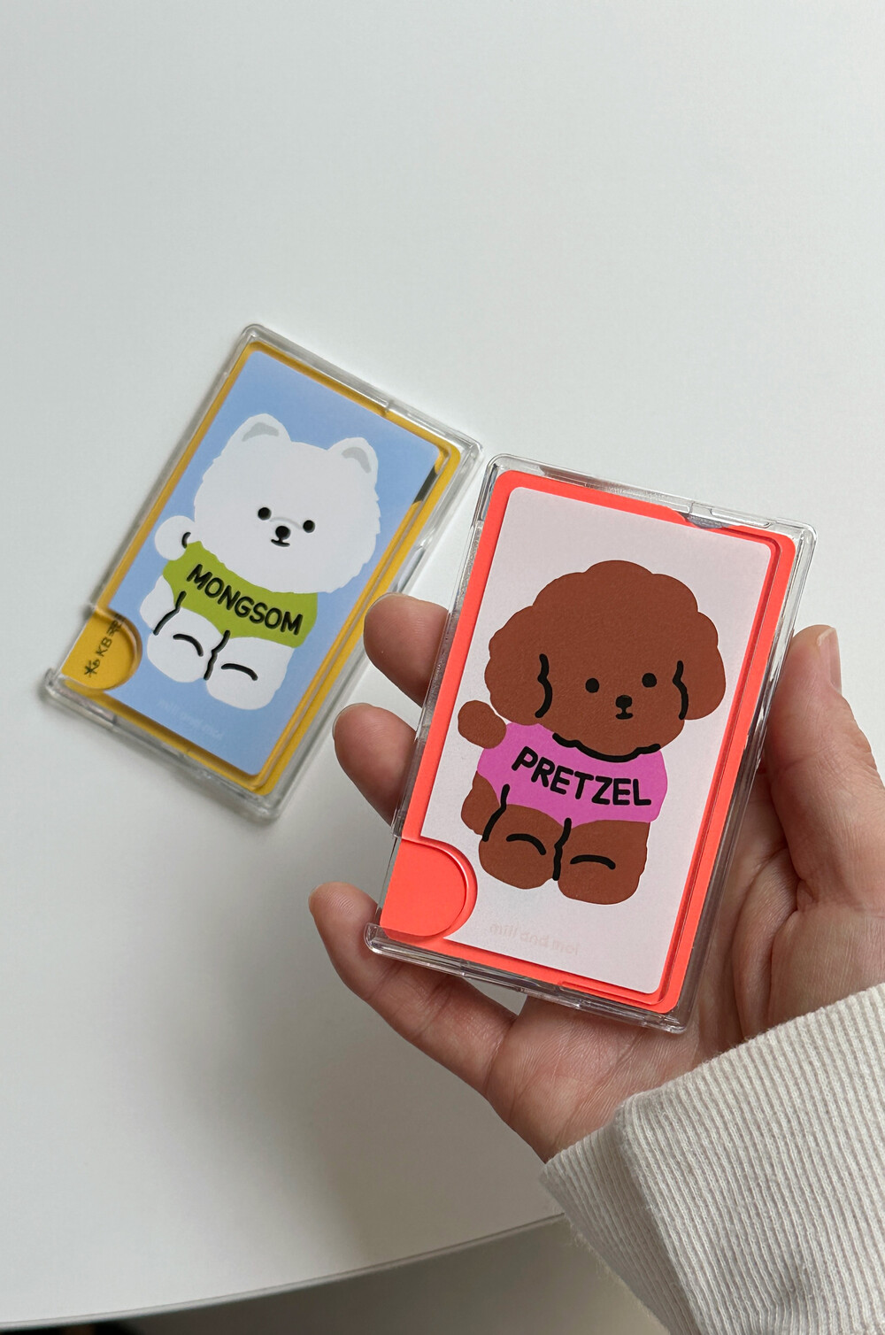 강아지의 티셔츠에 원하는 영어 알파벳을 넣을 수 있는 맥세이프 커스텀 카드팩입니다.