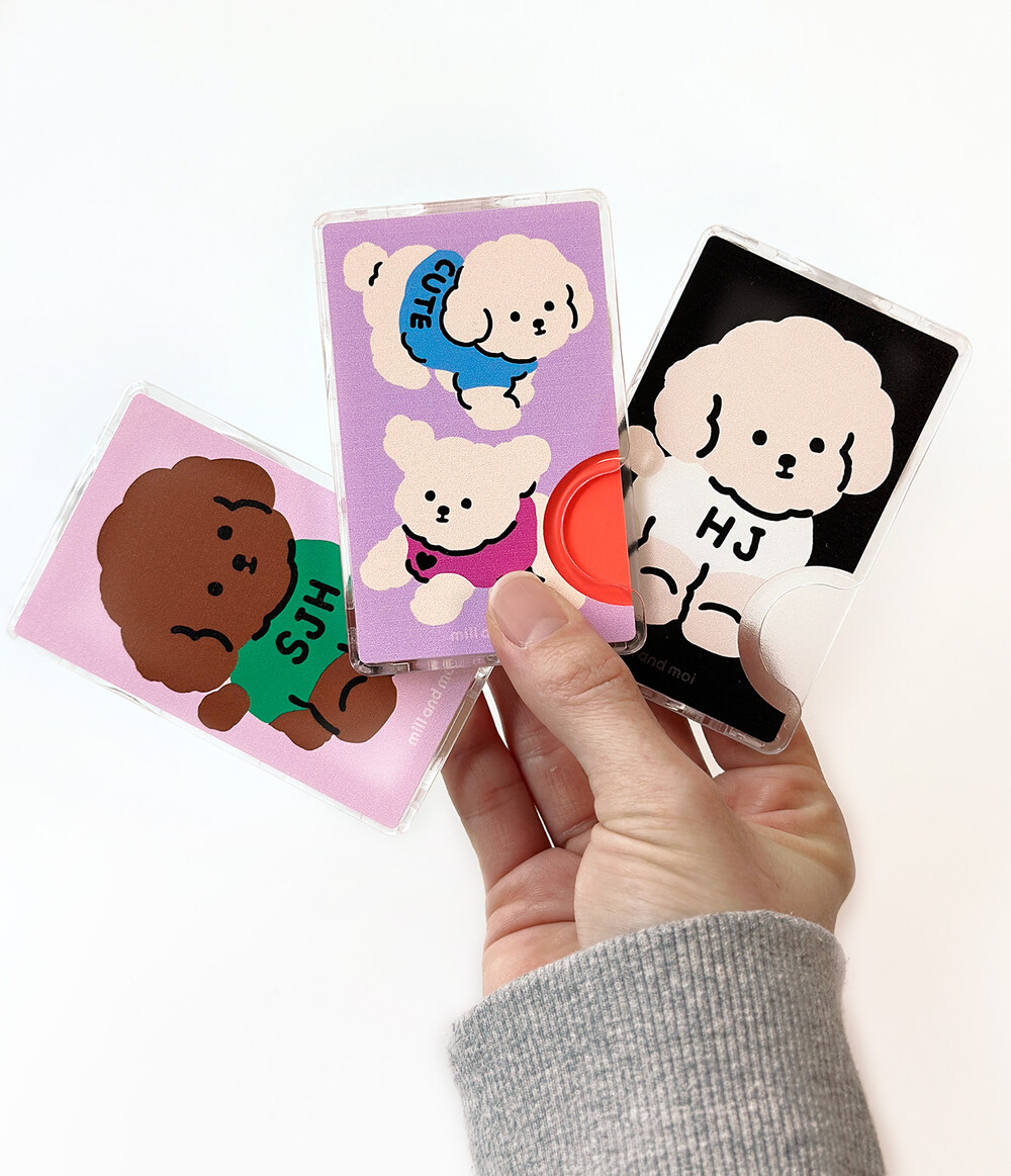 강아지의 티셔츠에 원하는 영어 알파벳을 넣을 수 있는 맥세이프 커스텀 카드팩입니다.