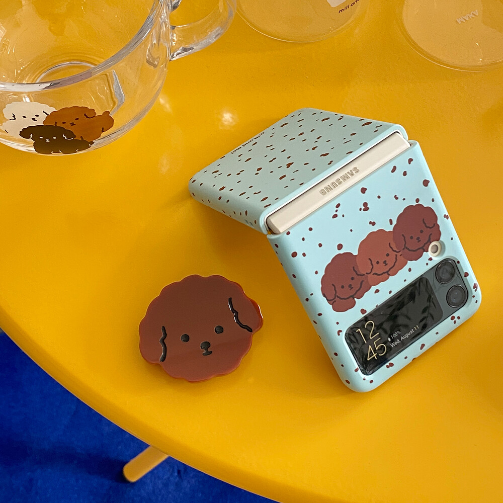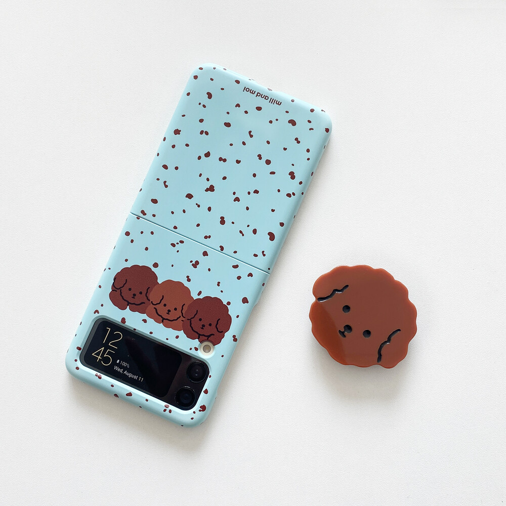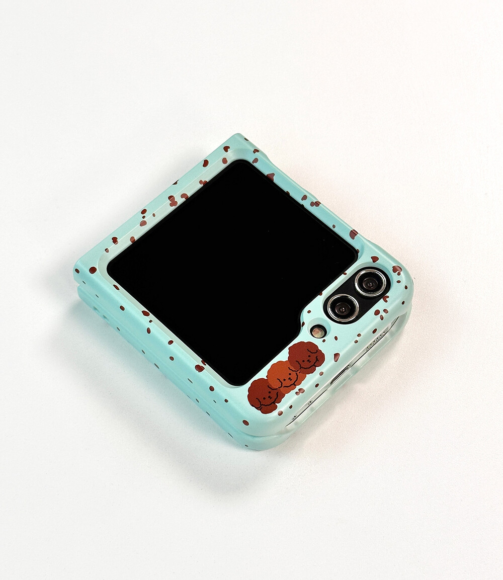 화사한 민트색 바탕에 초코칩이 박힌 배경, 그리고 초콜릿같은 세 마리의 브라운 푸드리 캐릭터까지. 이보다 귀여울 순 없어요.