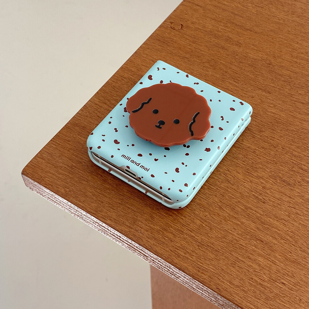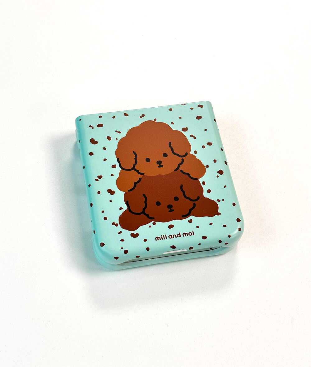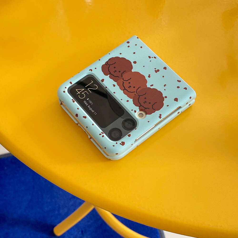 화사한 민트색 바탕에 초코칩이 박힌 배경, 그리고 초콜릿같은 세 마리의 브라운 푸드리 캐릭터까지. 이보다 귀여울 순 없어요.