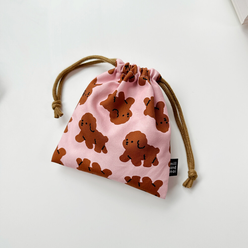 경쾌하게 걷고 있는 브라운 색상 푸드리 패턴을 인쇄한 원단으로 만들어져 심플하면서도 귀여움까지 놓치지 않은 파우치를 소개합니다.