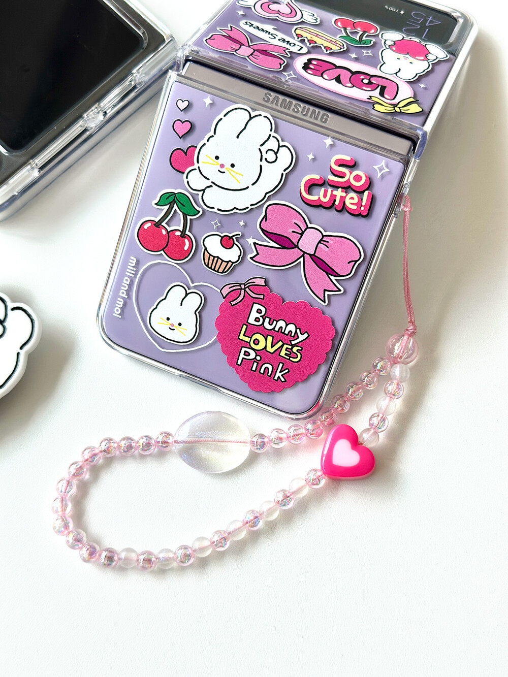 핑크 오로라 투명 비즈스트랩은 바니핑 시리즈와 세트로 추천합니다.