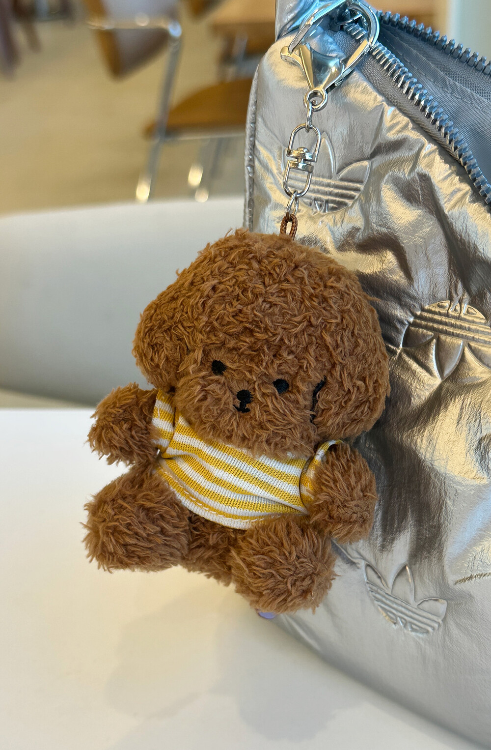 작지않고 여유있는 사이즈의 고리를 사용하여 가방에 걸기 편합니다.