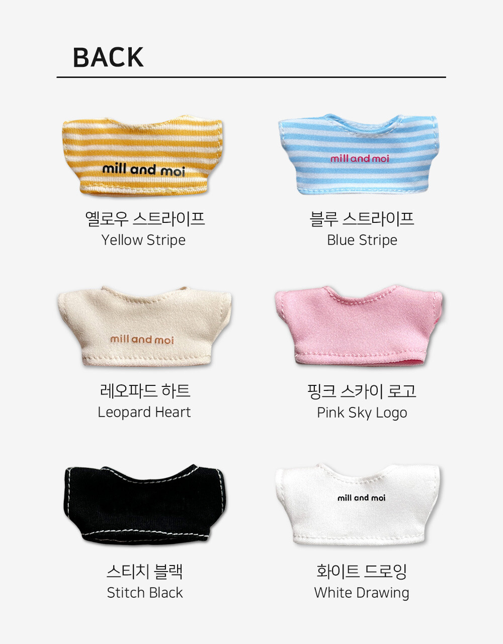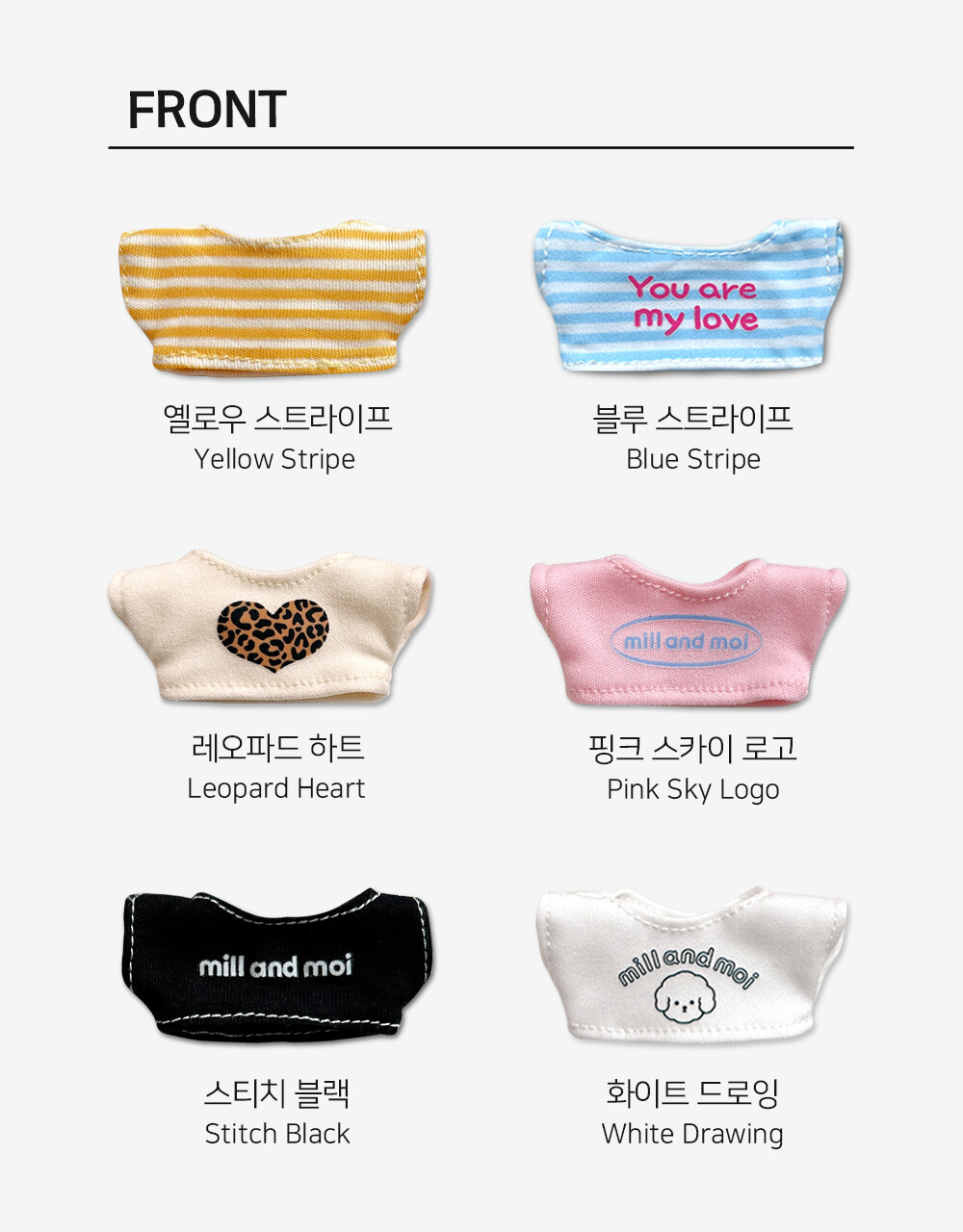 밀앤모이 인형 키링 전용 미니 티셔츠입니다. 입혀보면 귀여움이 두 배! 꼭 함께 구매해보세요.