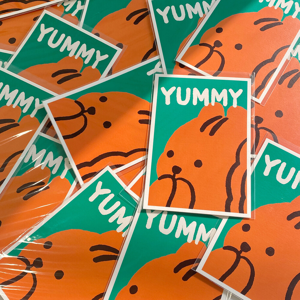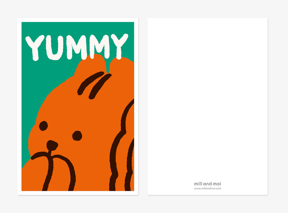 비비드한 민트 바탕과 오렌지색 다람이, 레터링이 어우러져 귀여우면서 빈티지한 느낌을 줍니다.