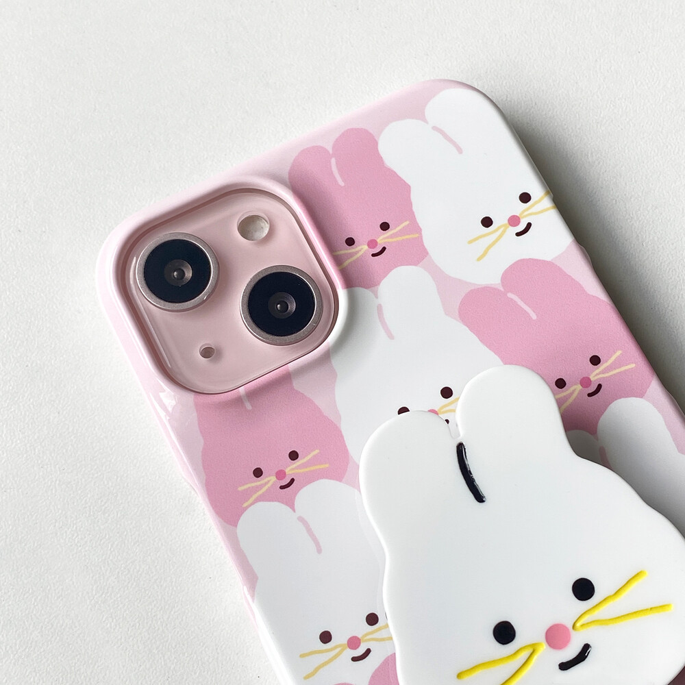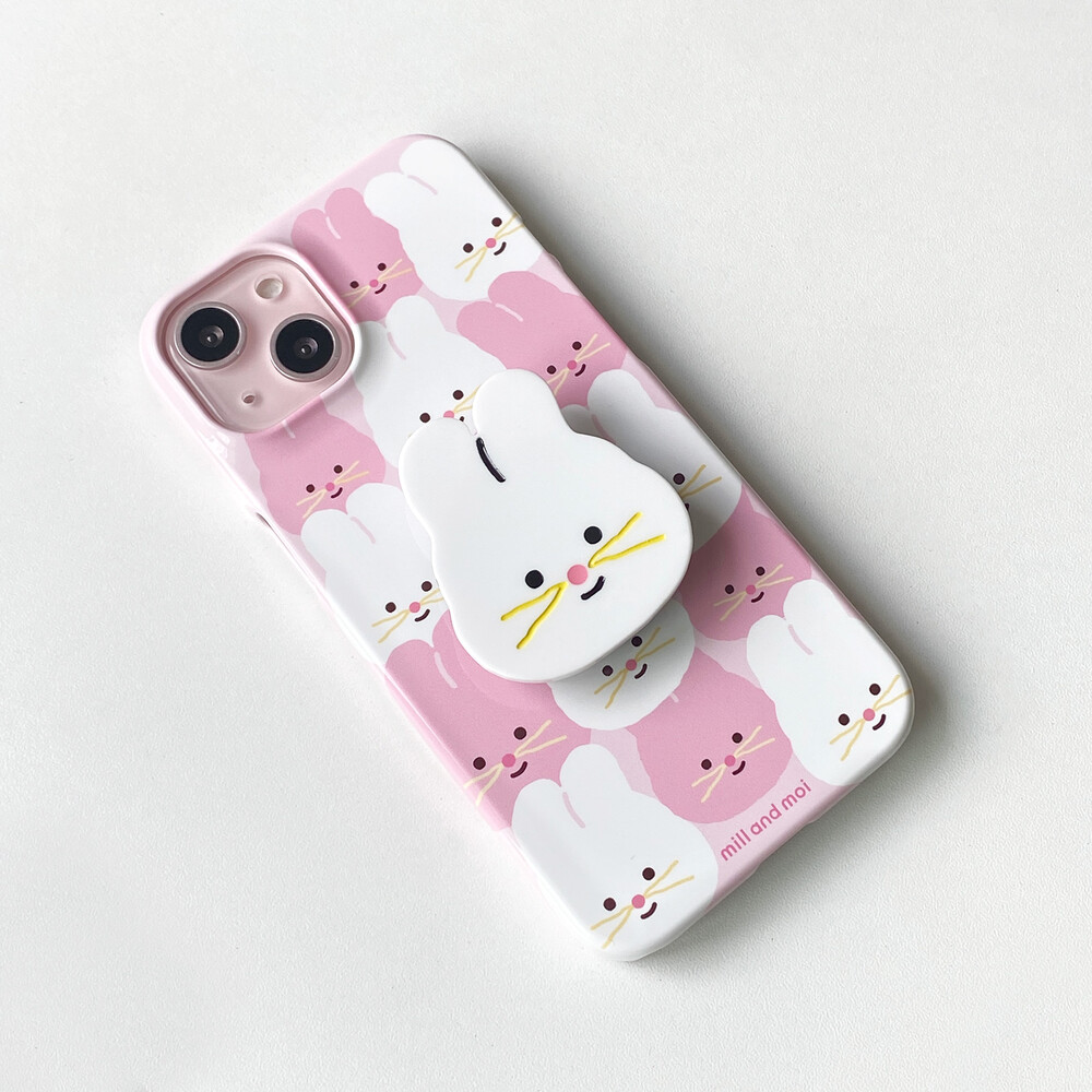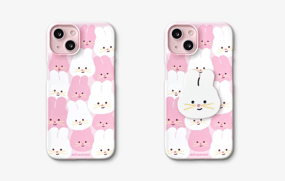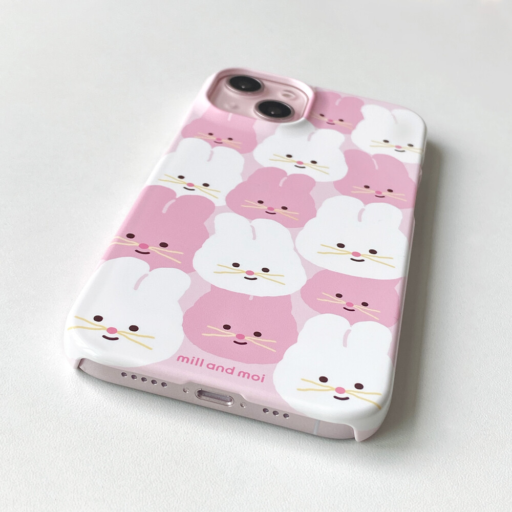화이트, 핑크색의 사랑스러운 토끼 캐릭터, 바니핑의 귀여운 얼굴이 와글와글 꾸러미로 가득한 폰케이스입니다.