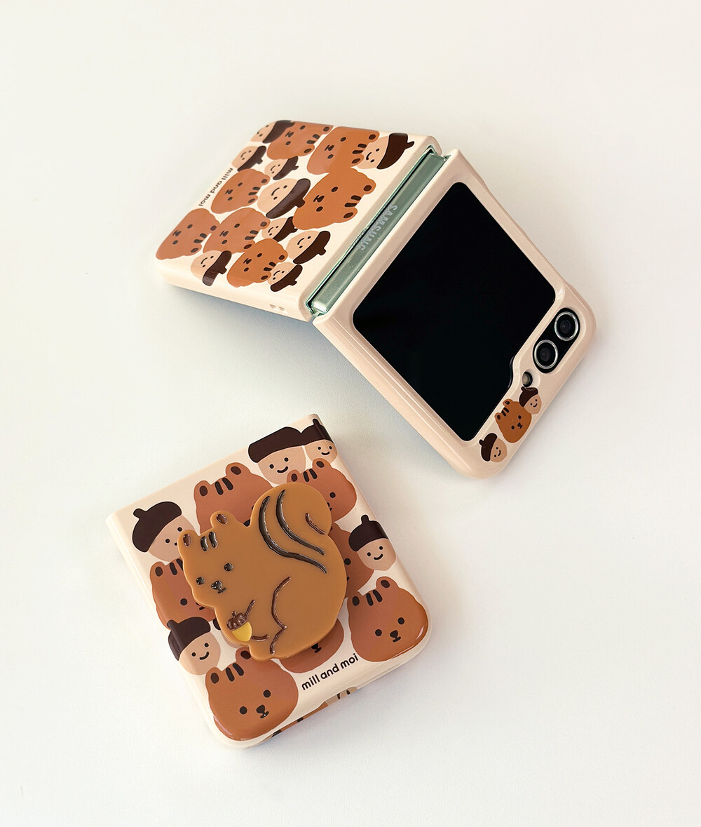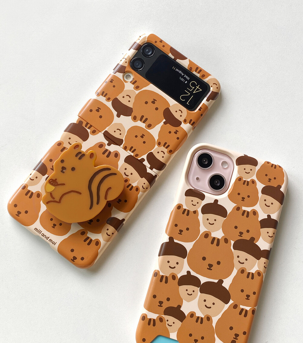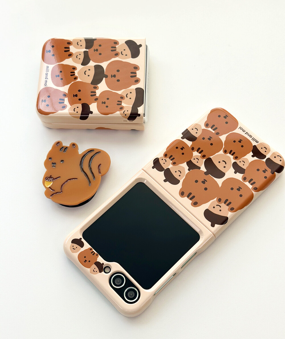 다람이와 토리의 귀여운 얼굴이 와글와글 꾸러미로 가득한 지플립 케이스입니다.