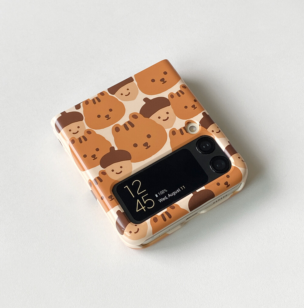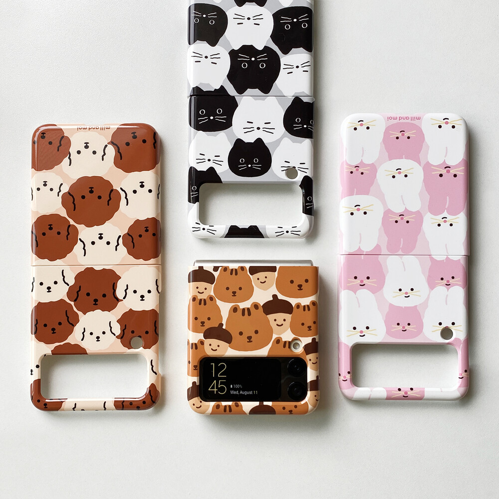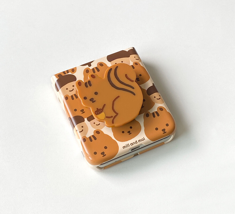 다람이와 토리의 귀여운 얼굴이 와글와글 꾸러미로 가득한 지플립 케이스입니다.