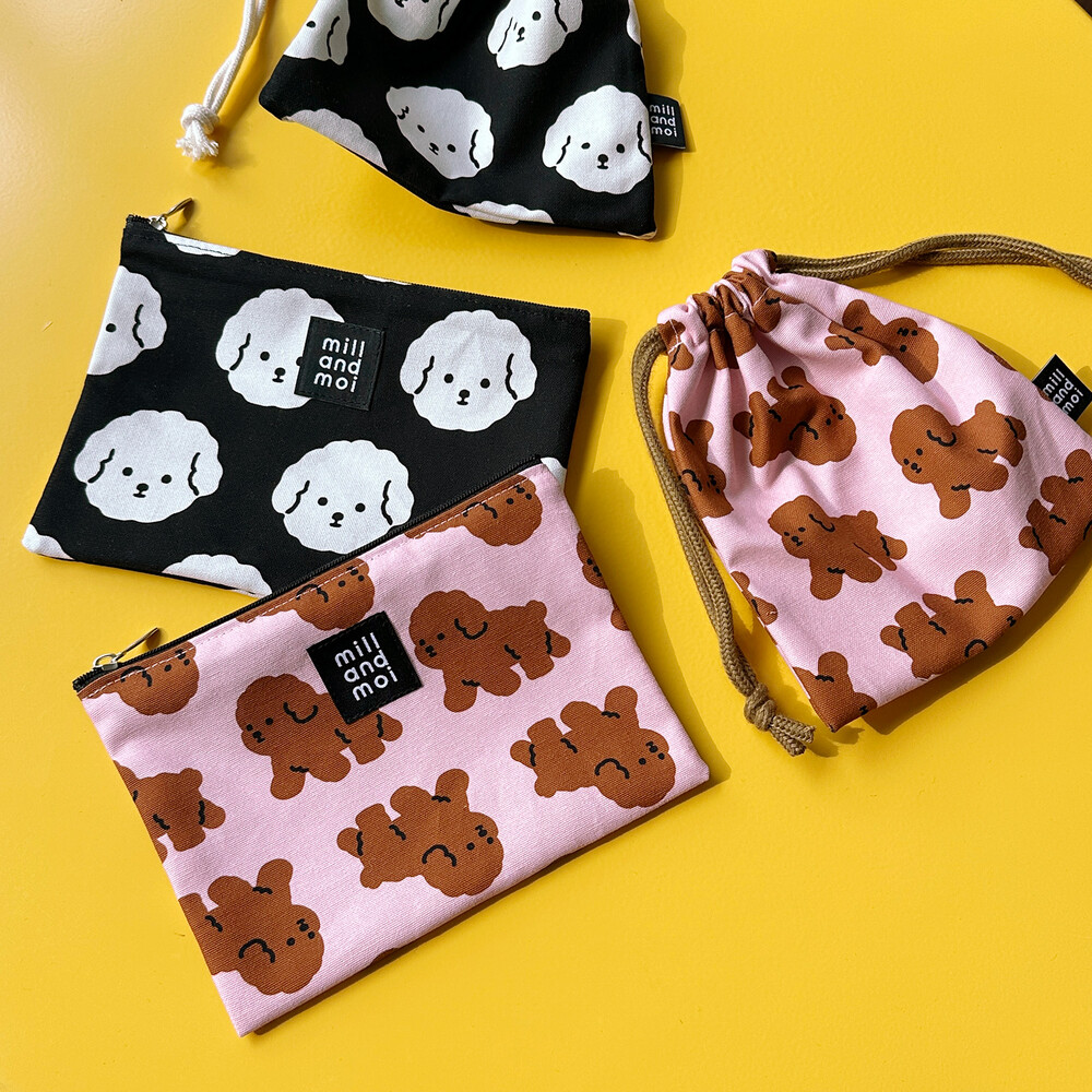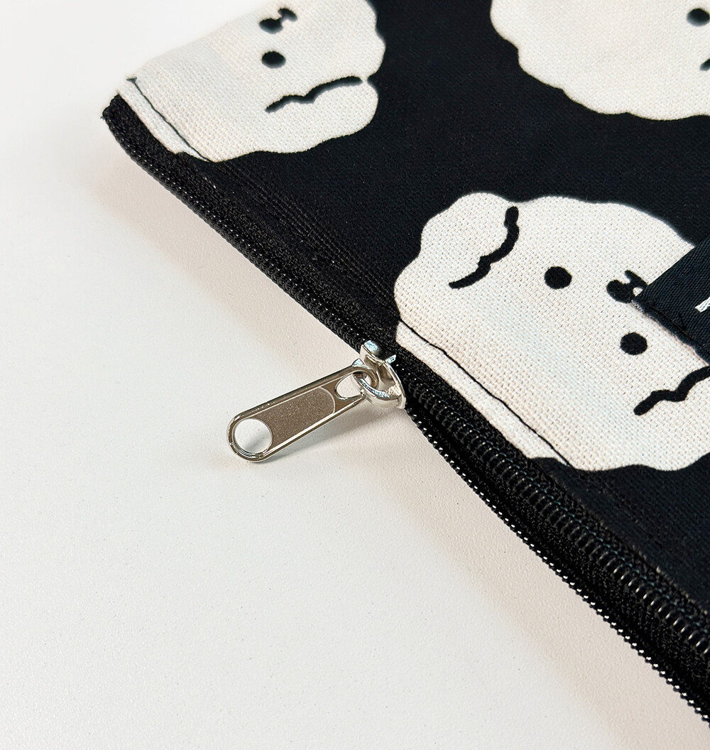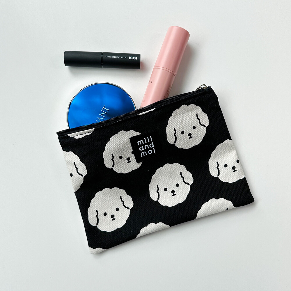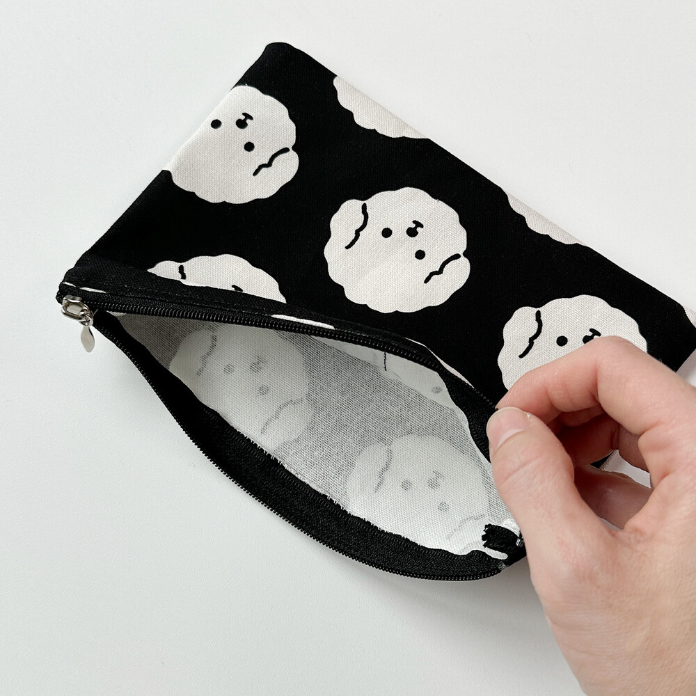 크림푸드리 얼굴 패턴을 인쇄한 원단으로 만들어져 심플하면서도 귀여움까지 놓치지 않은 파우치를 소개합니다.