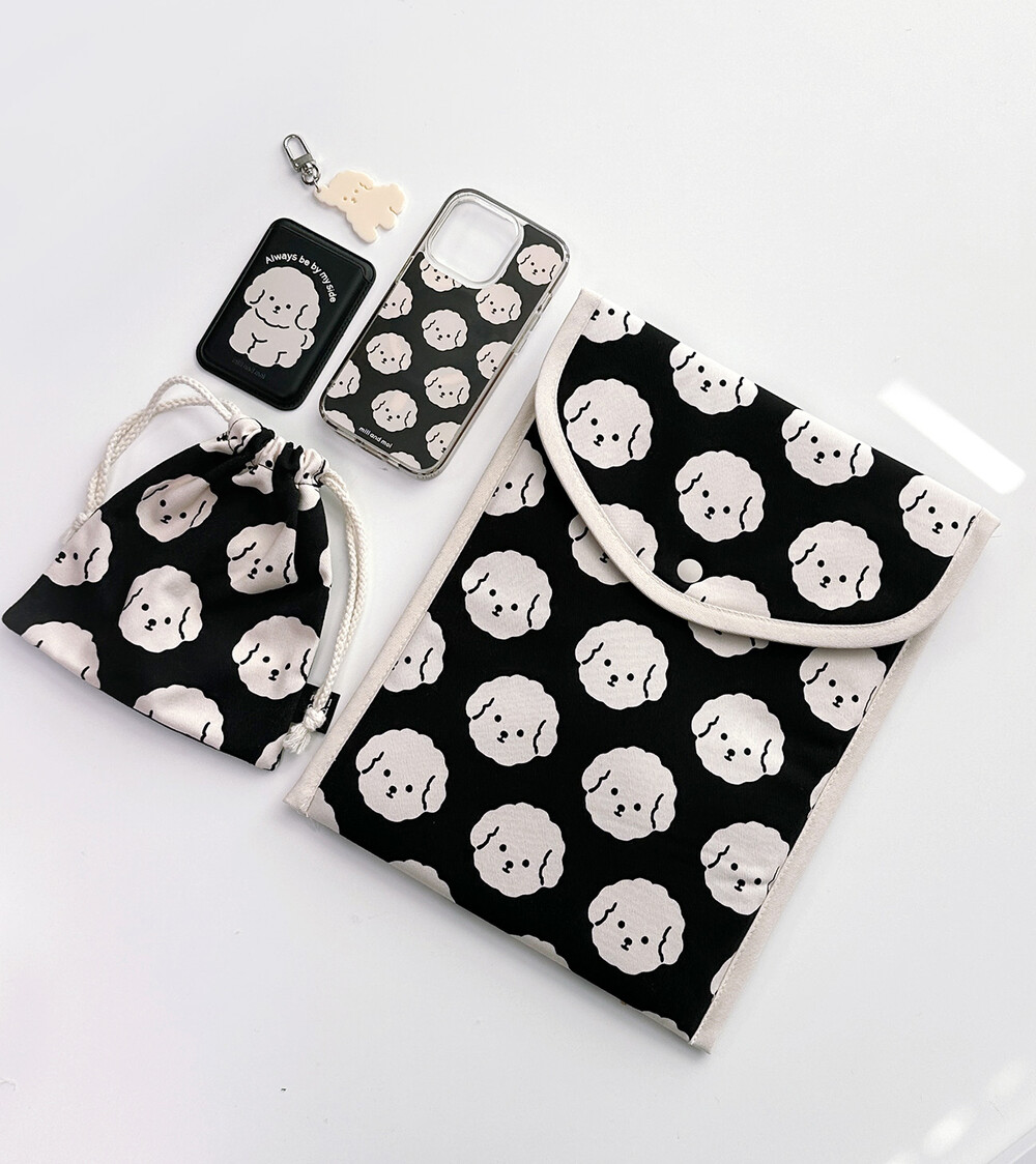 아이패드 파우치 11인치- 블랙 크림푸드리 패턴